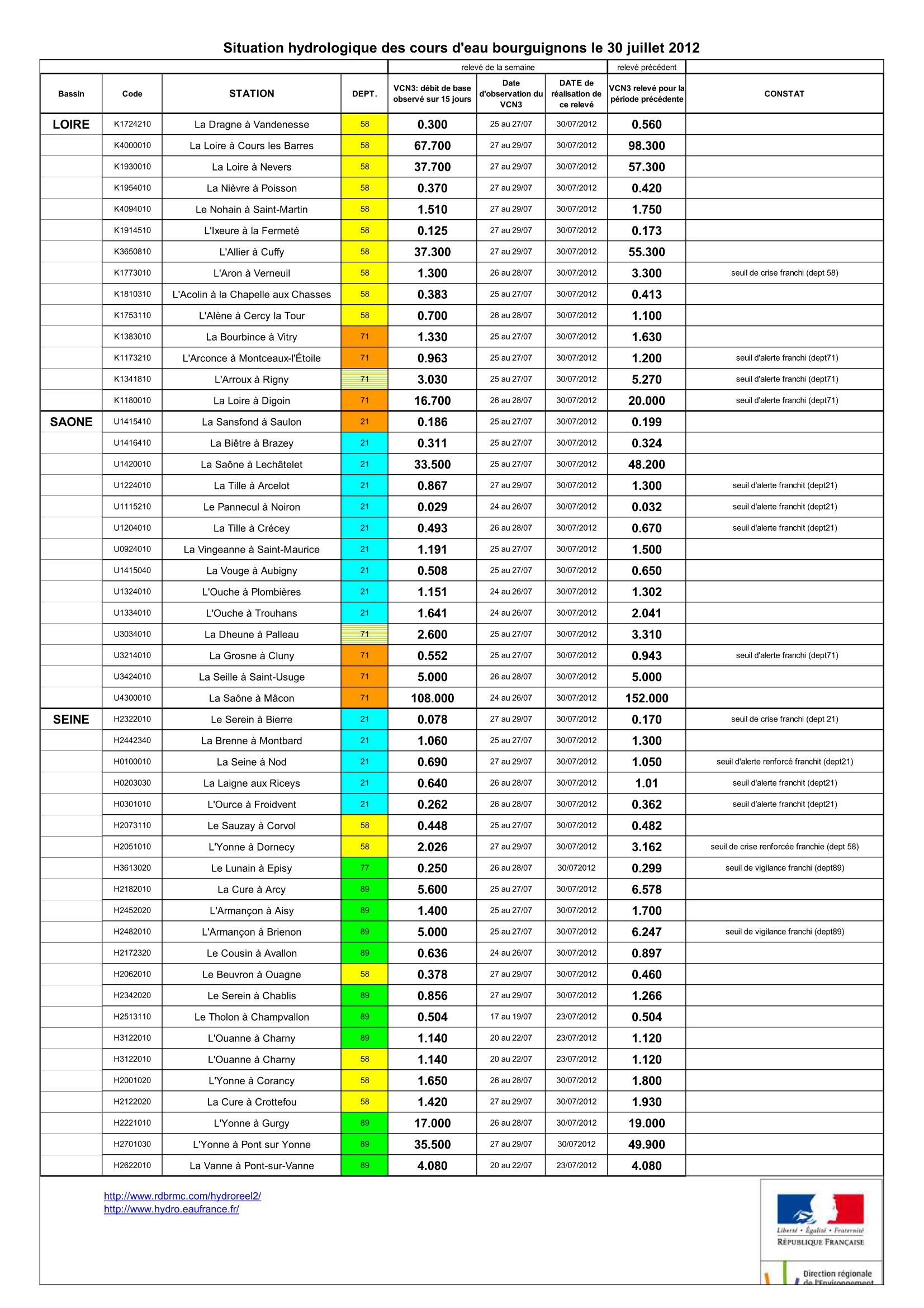 Bulletin Sécheresse BFC/Ouest 30-07-2012