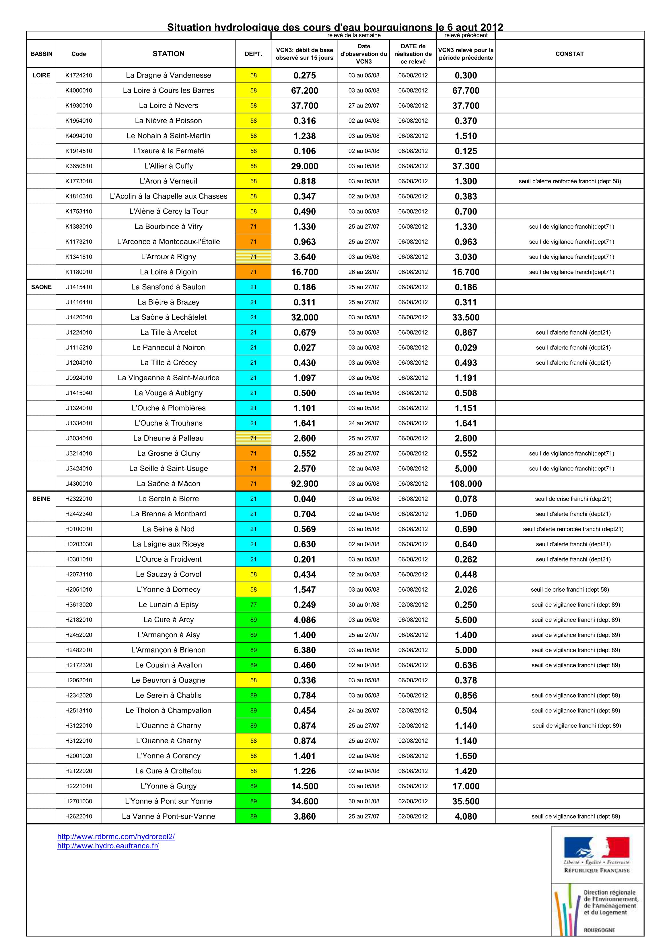 Bulletin Sécheresse BFC/Ouest 06-08-2012