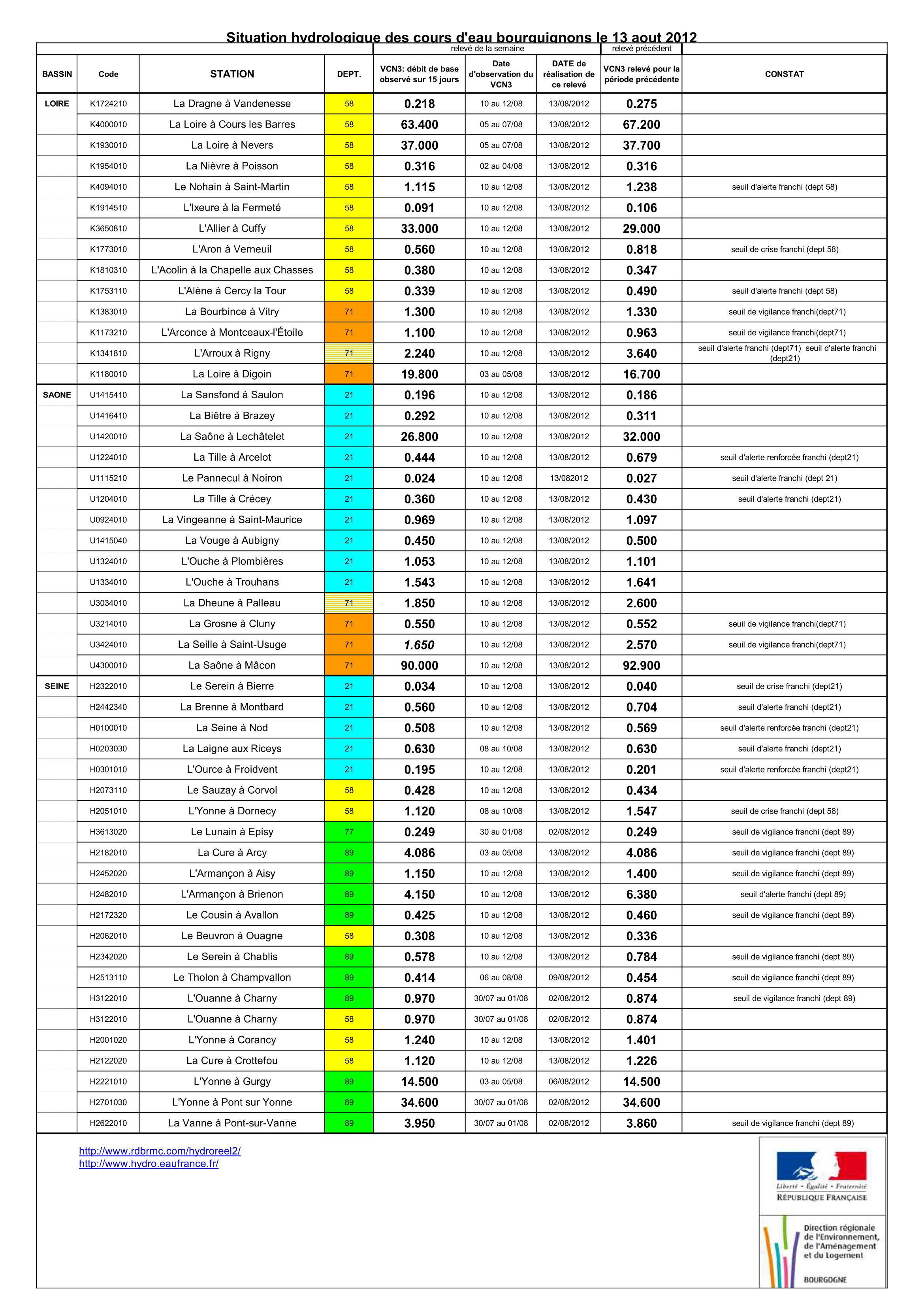 Bulletin Sécheresse BFC/Ouest 13-08-2012