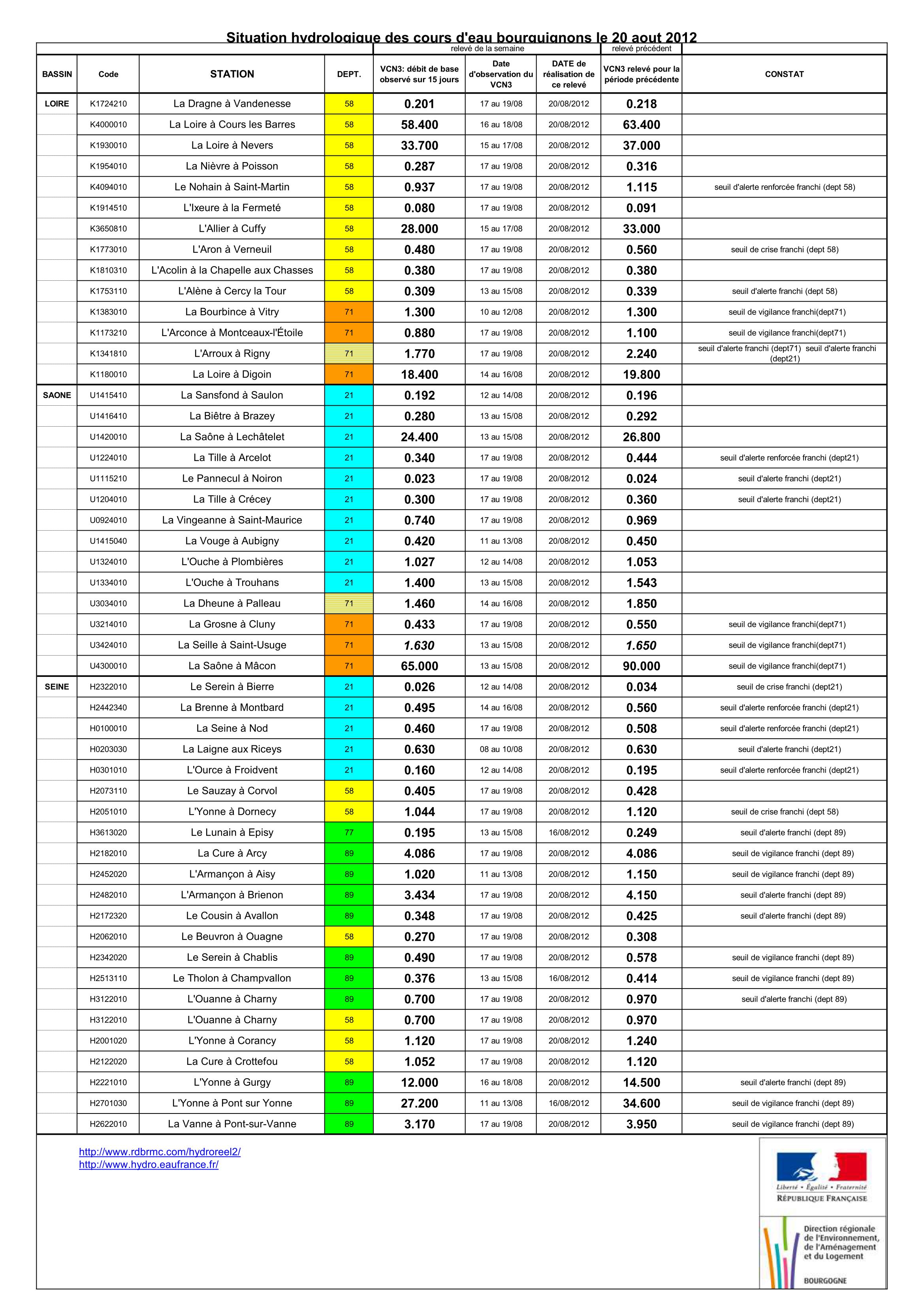 Bulletin Sécheresse BFC/Ouest 20-08-2012