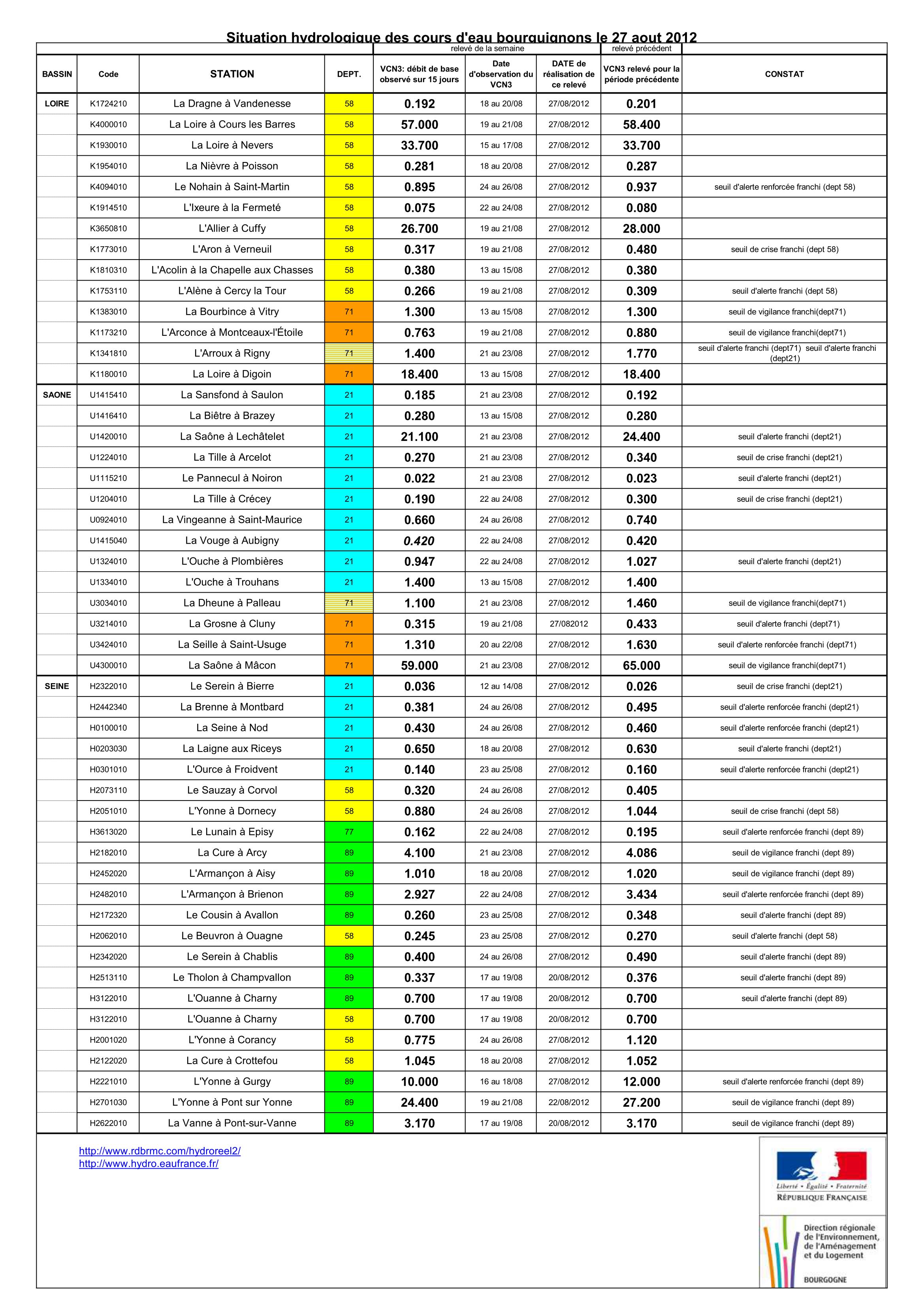 Bulletin Sécheresse BFC/Ouest 27-08-2012