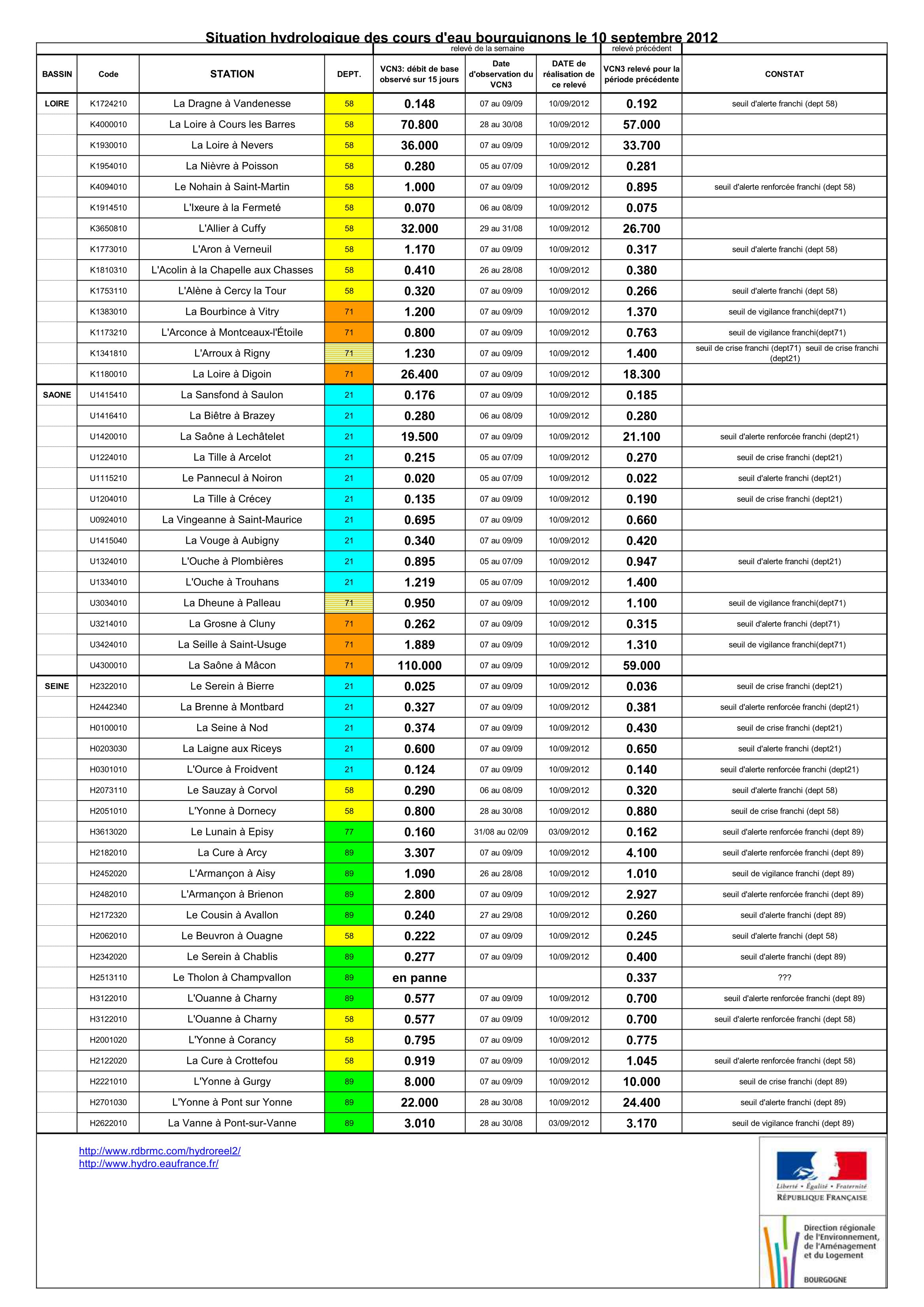 Bulletin Sécheresse BFC/Ouest 10-09-2012