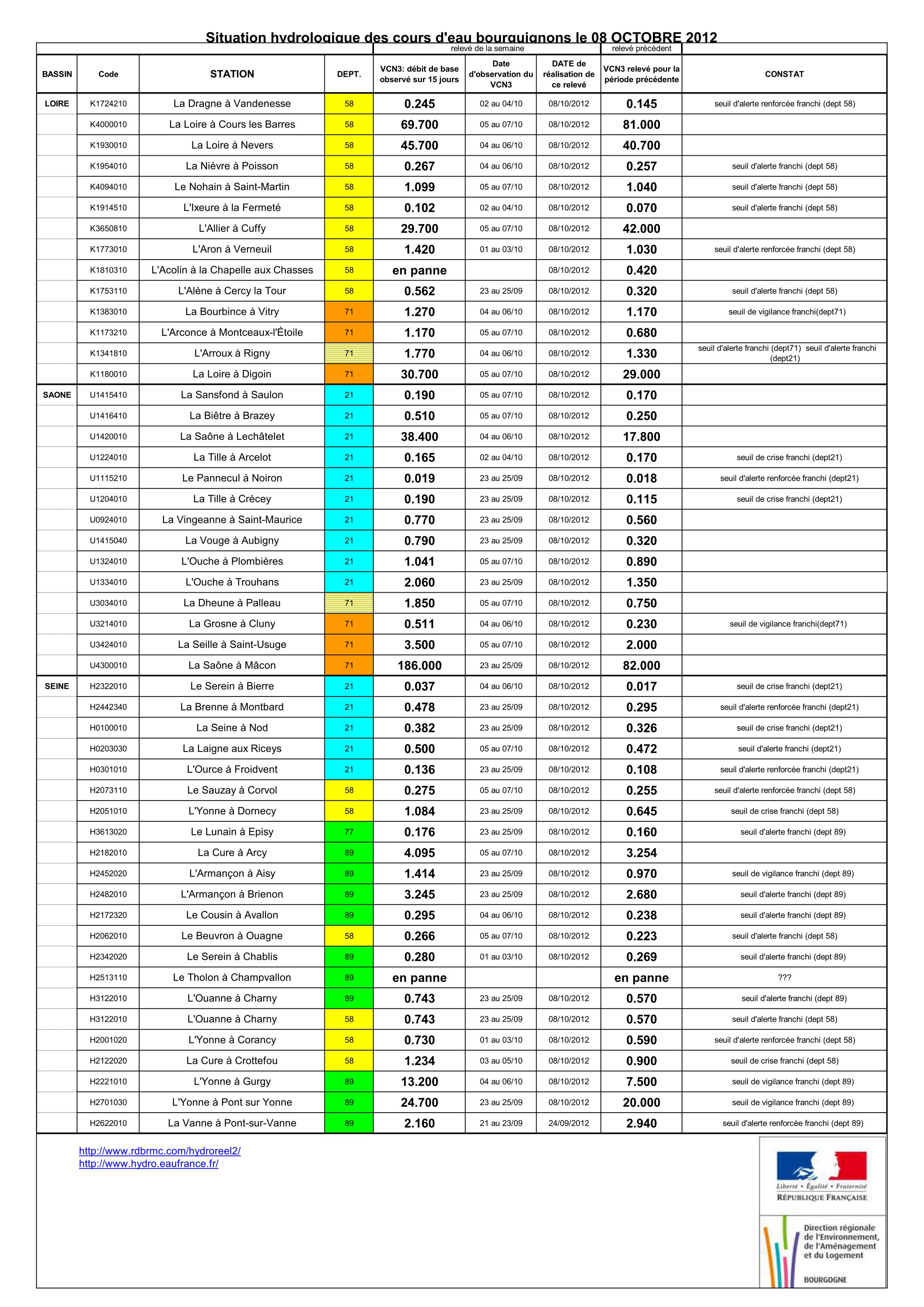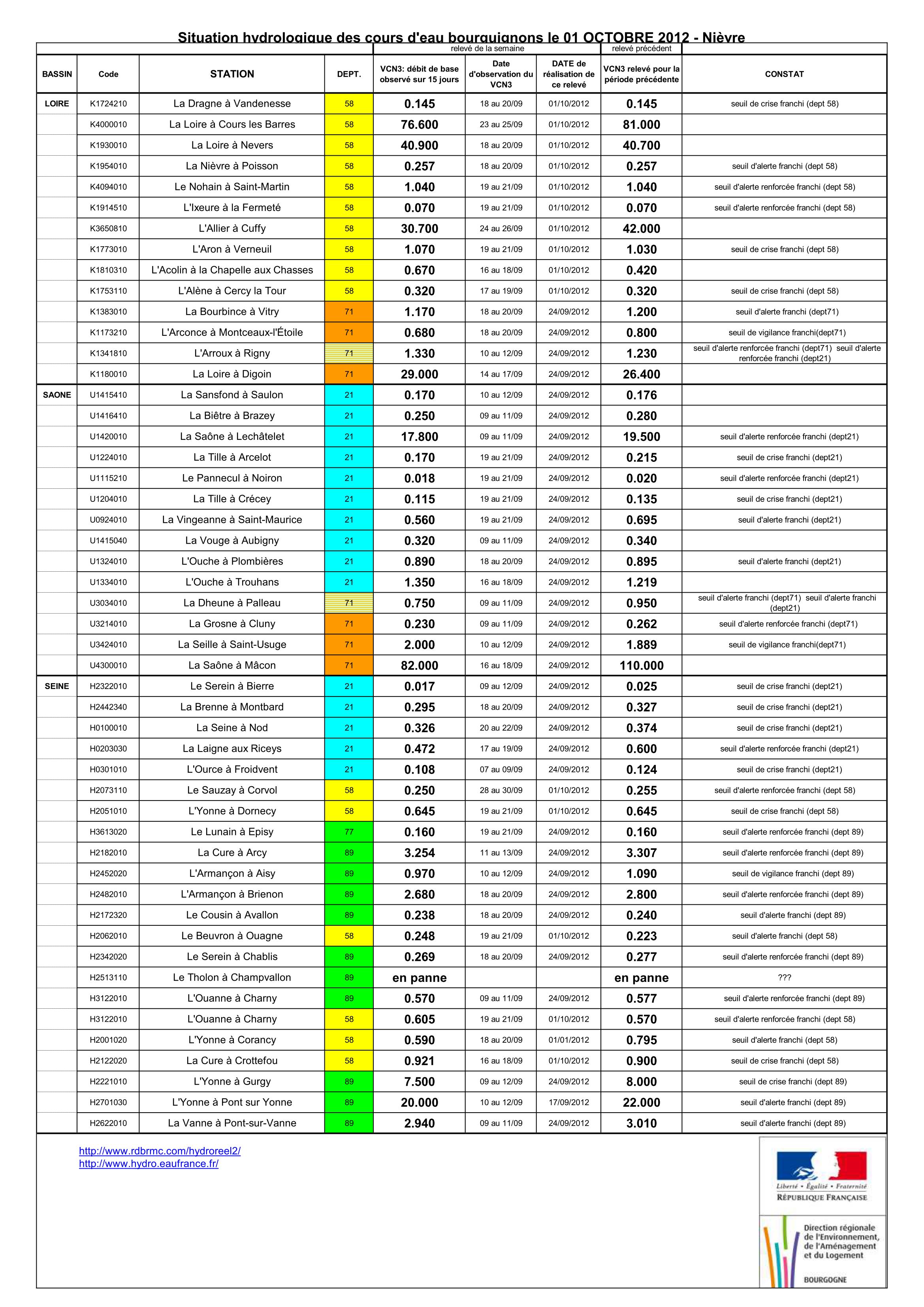 Bulletin Sécheresse BFC/Ouest-58 01-10-2012