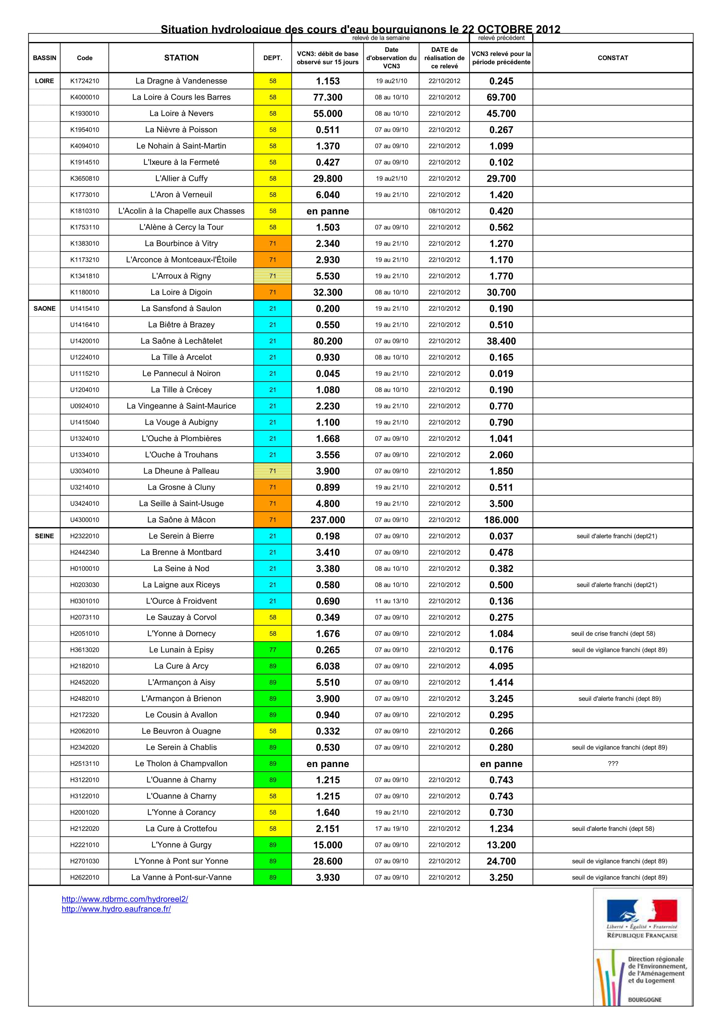 Bulletin Sécheresse BFC/Ouest 22-10-2012