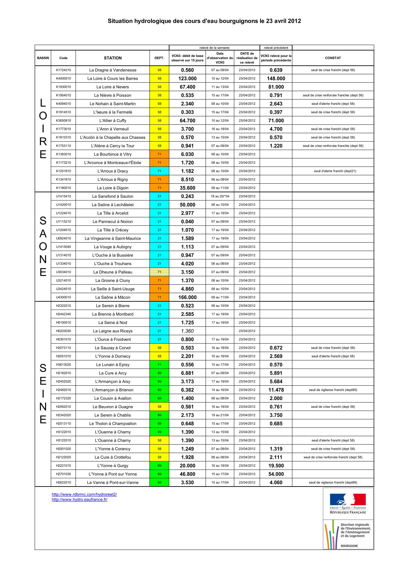 Bulletin Sécheresse BFC/Ouest 23-04-2012