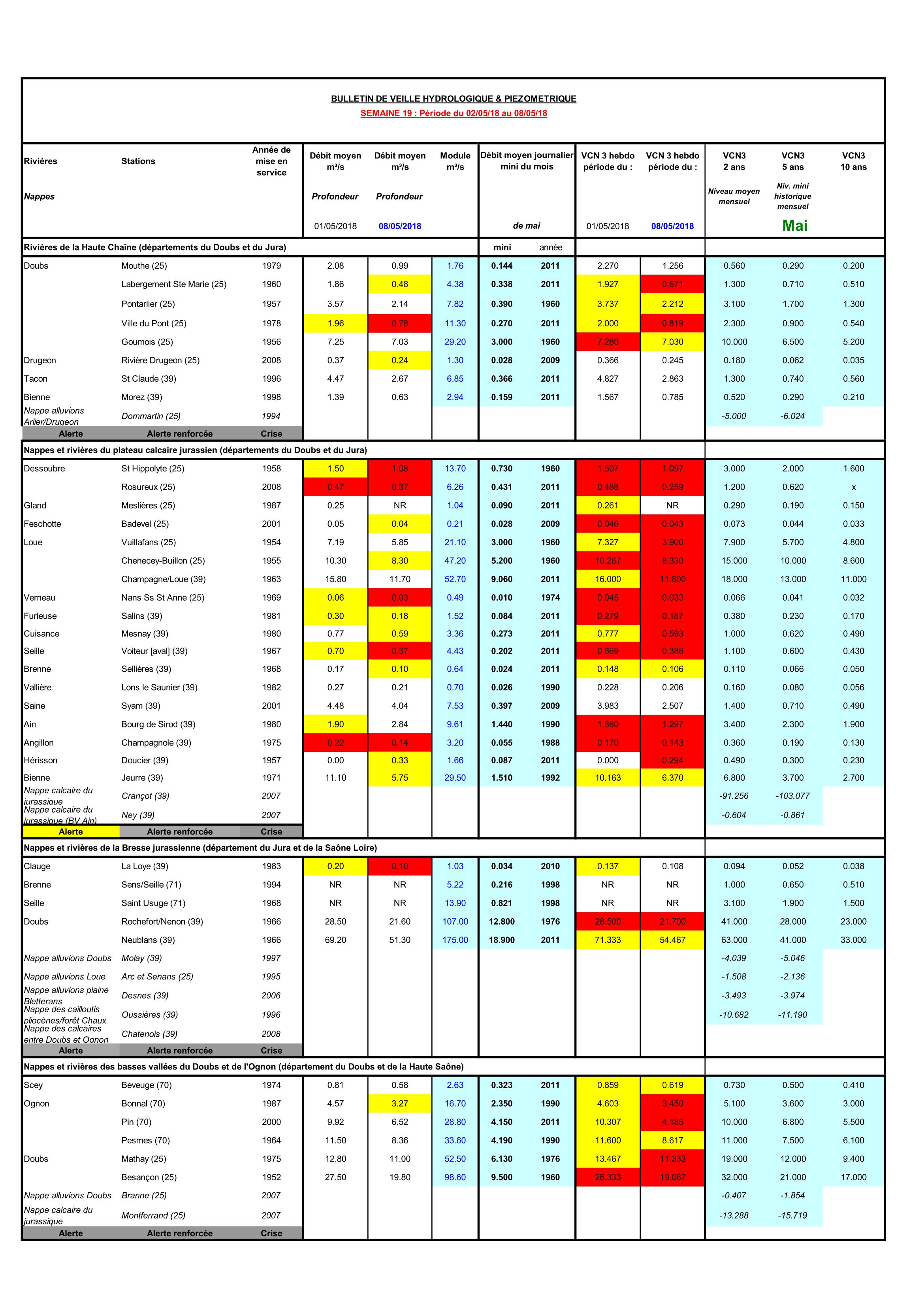 Bulletin Sécheresse semaine 19 - 2018