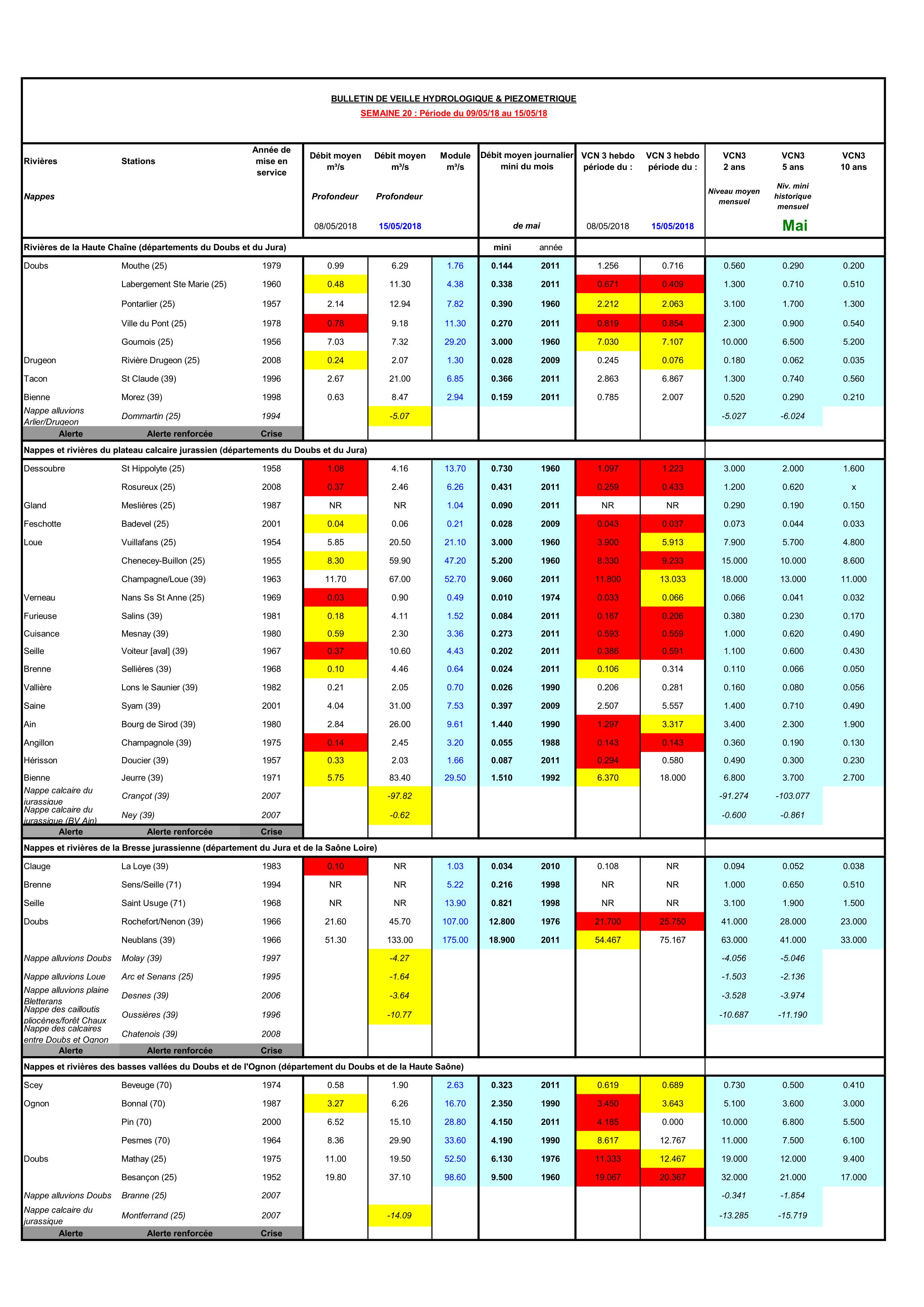 Bulletin Sécheresse semaine 20 - 2018