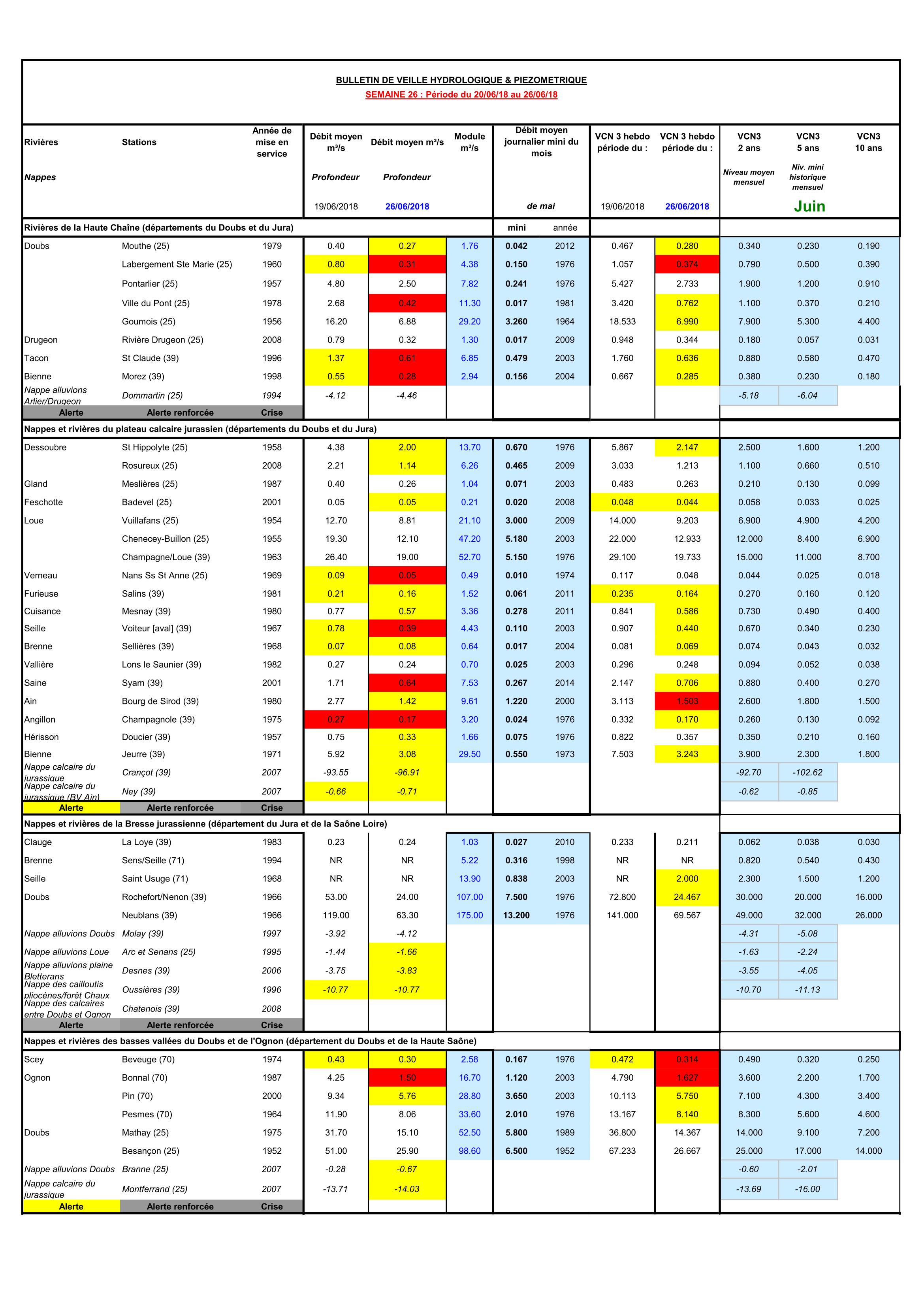 Bulletin Sécheresse semaine 26 - 2018