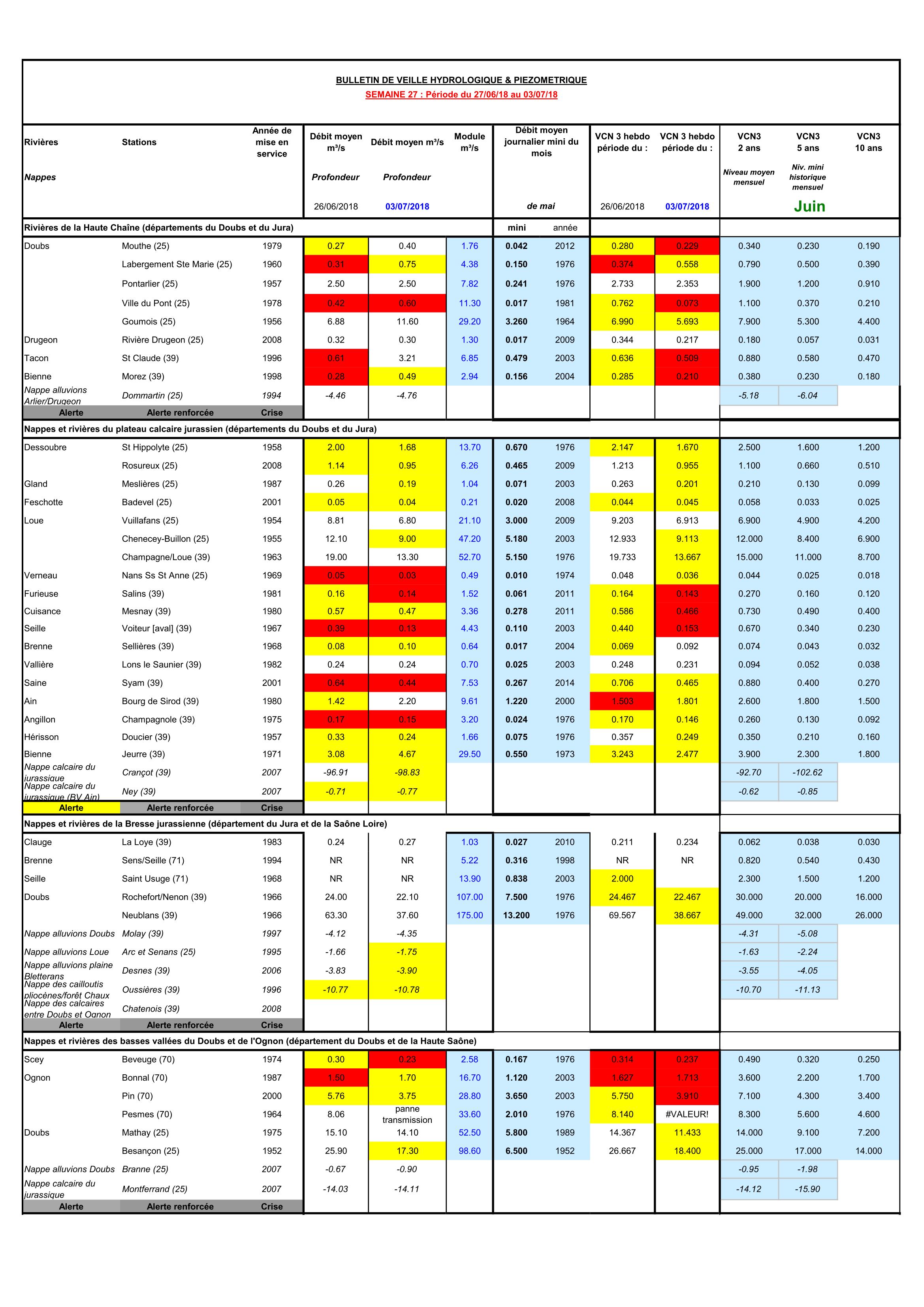 Bulletin Sécheresse semaine 27 - 2018
