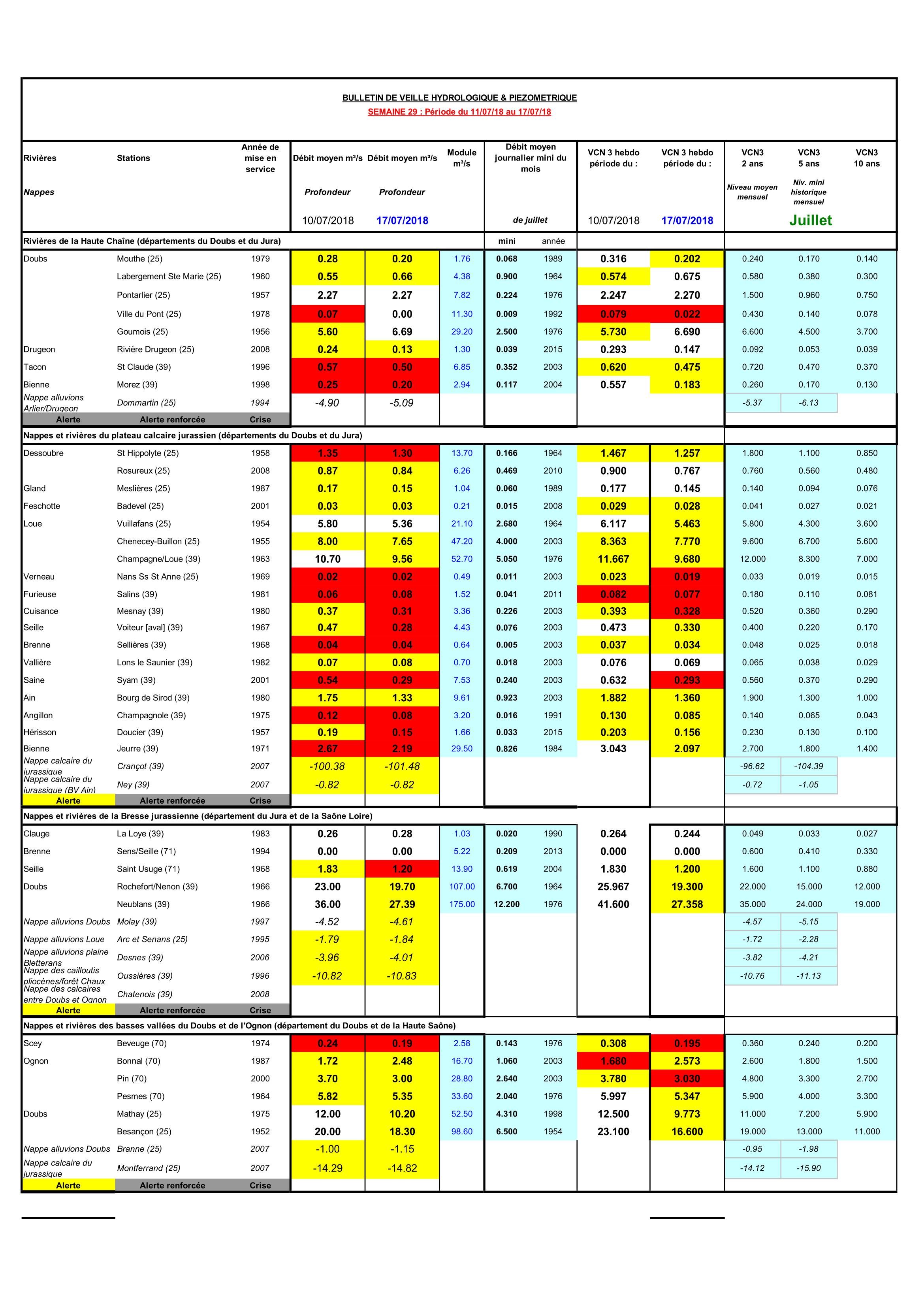 Bulletin Sécheresse semaine 29 - 2018