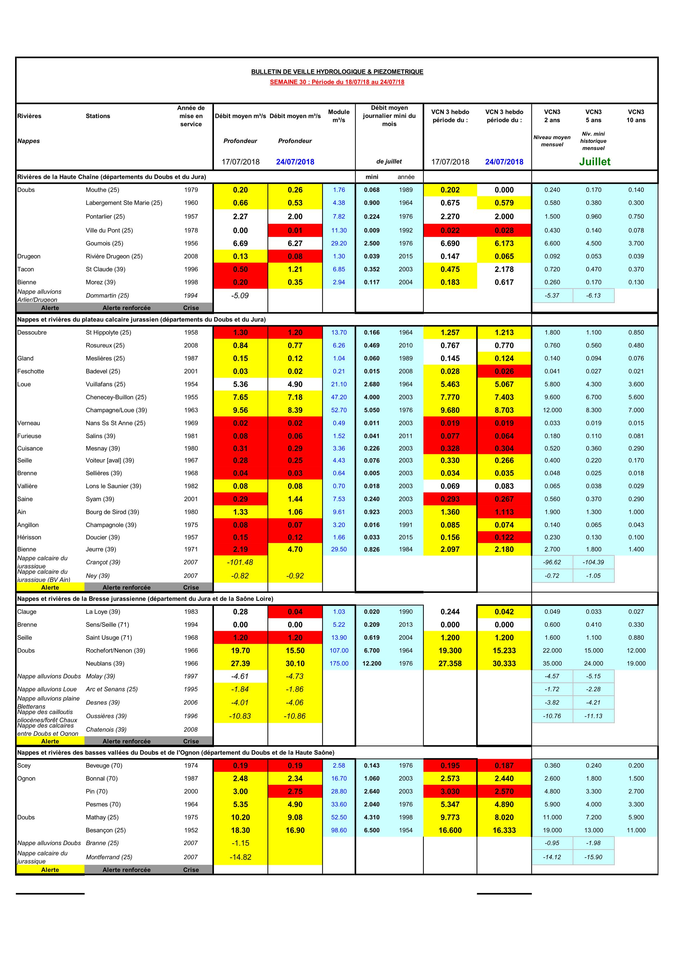Bulletin Sécheresse semaine 30 - 2018