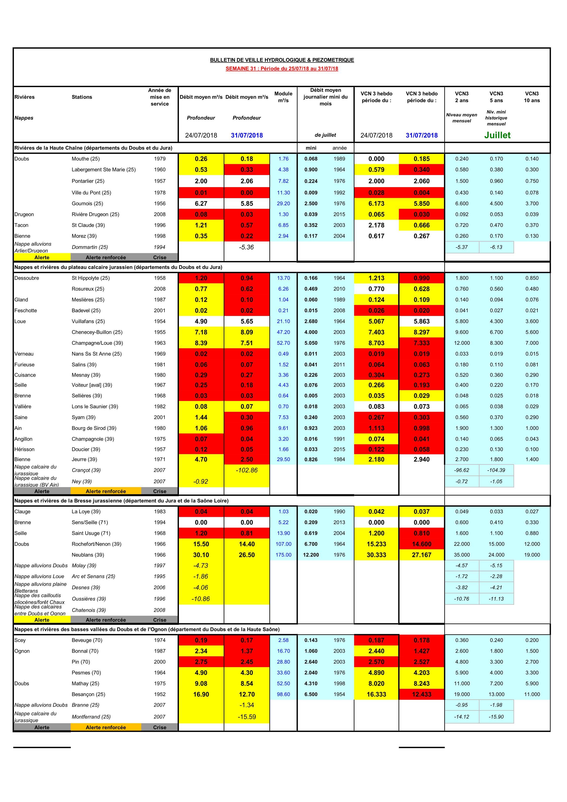 Bulletin Sécheresse semaine 31 - 2018