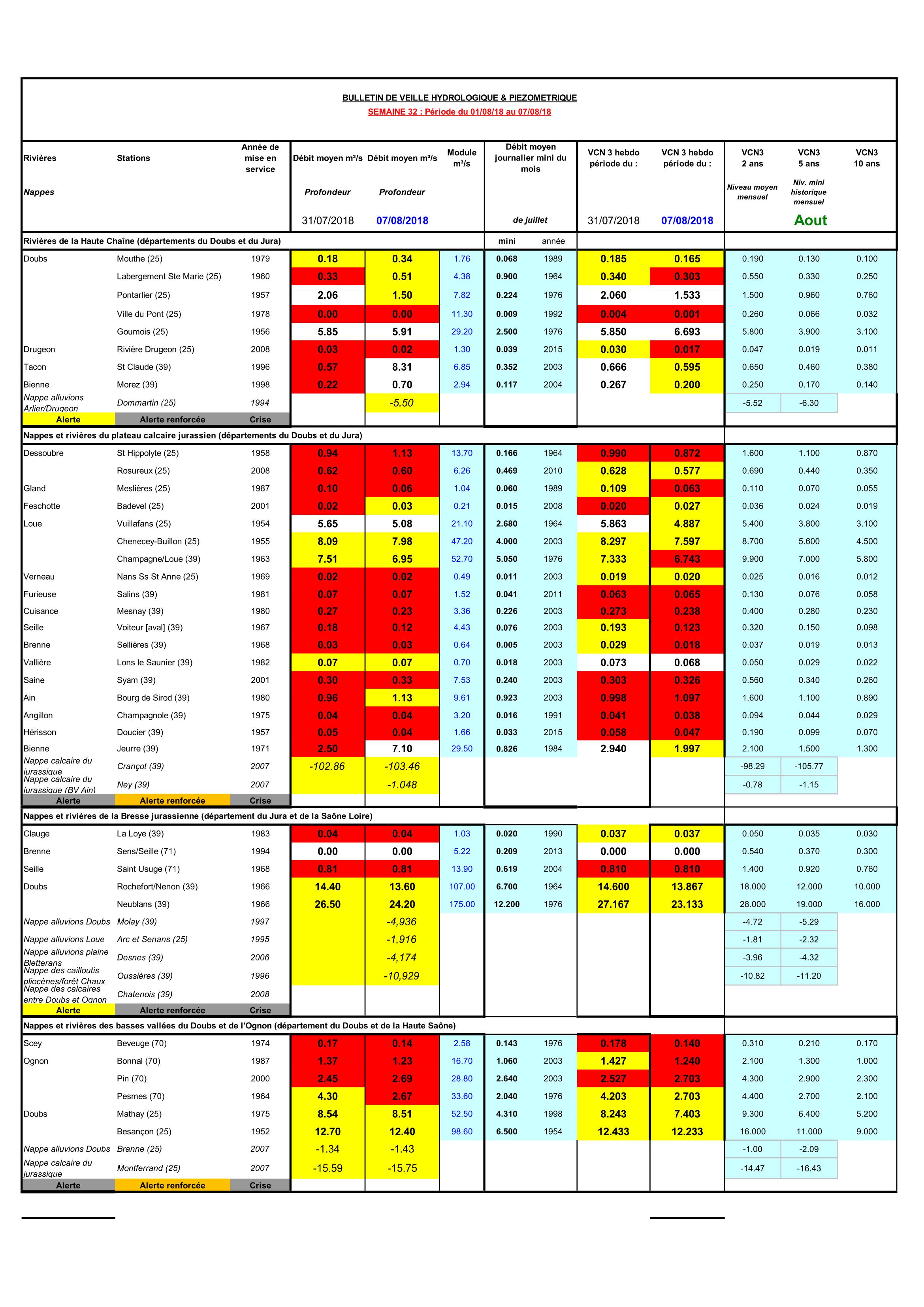 Bulletin Sécheresse semaine 32 - 2018