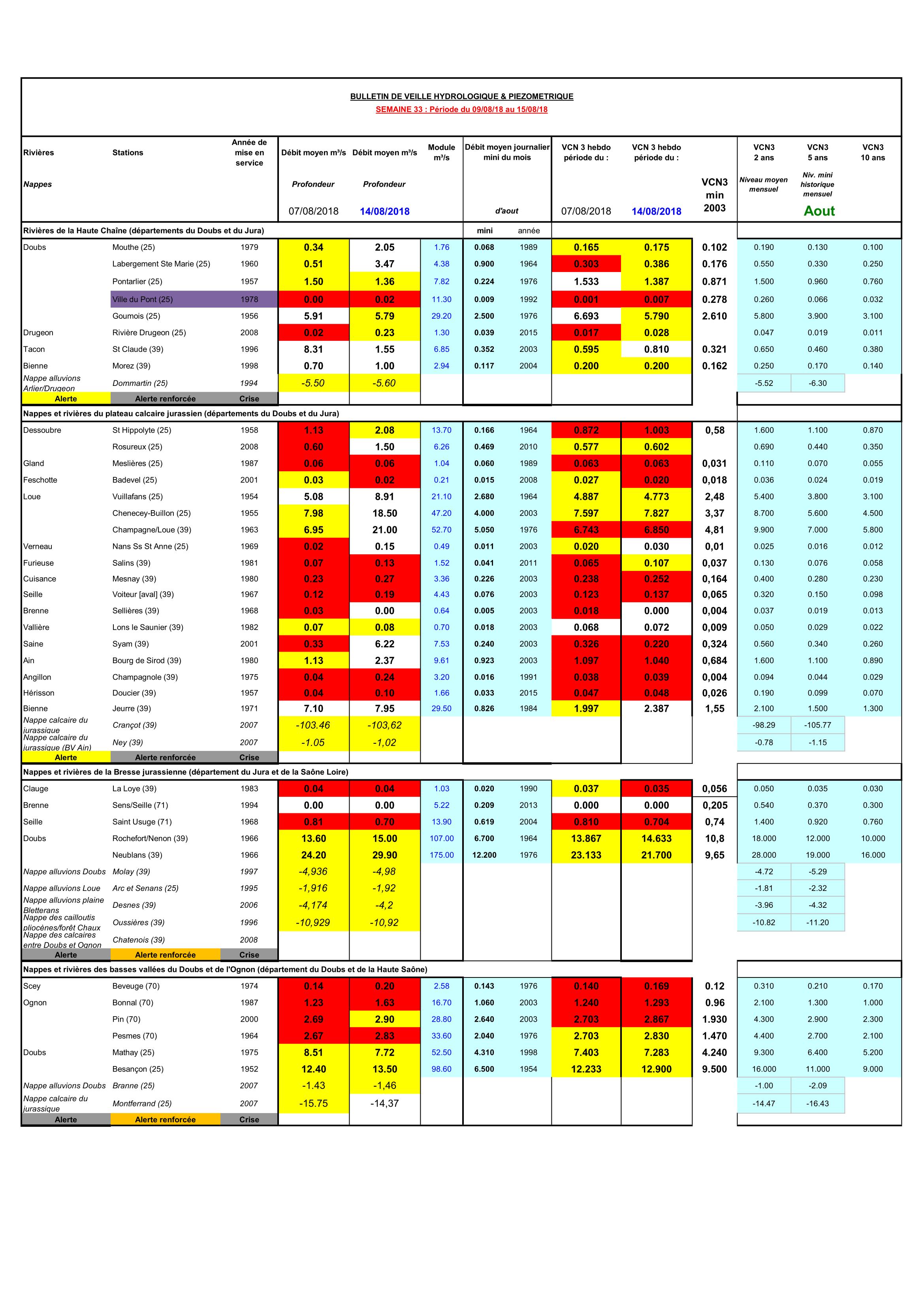 Bulletin Sécheresse semaine 33 - 2018