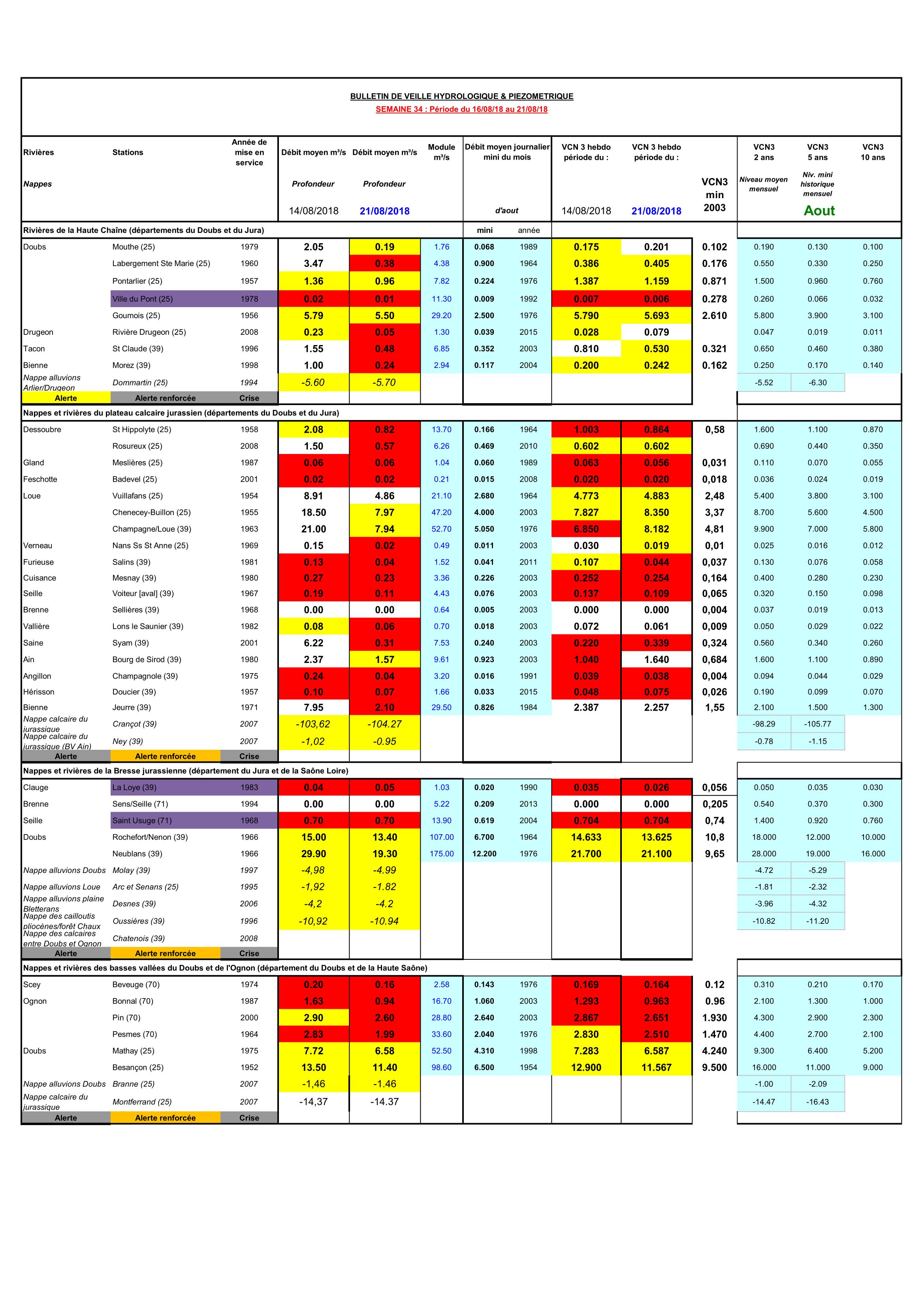 Bulletin Sécheresse semaine 34 - 2018