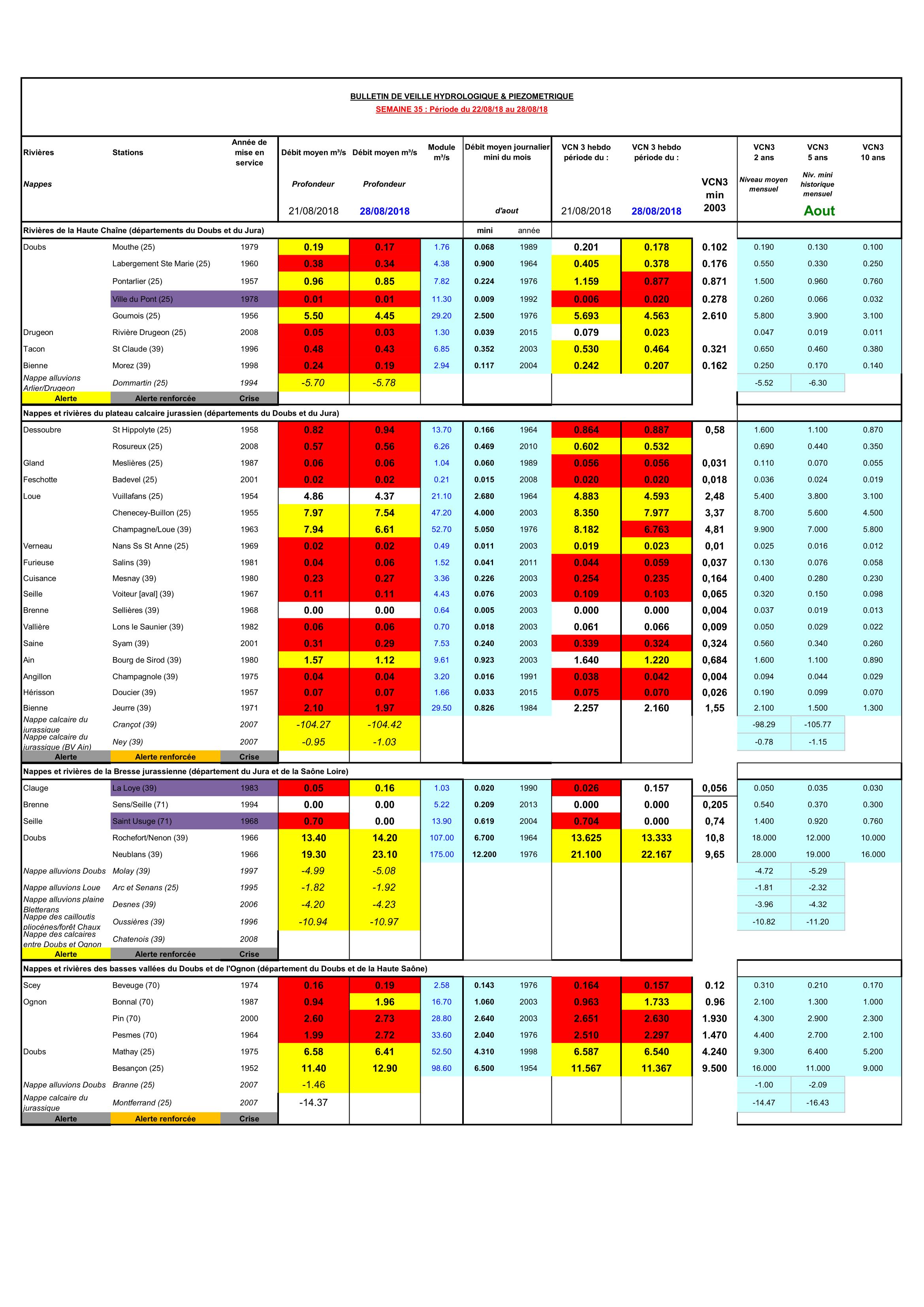 Bulletin Sécheresse semaine 35 - 2018