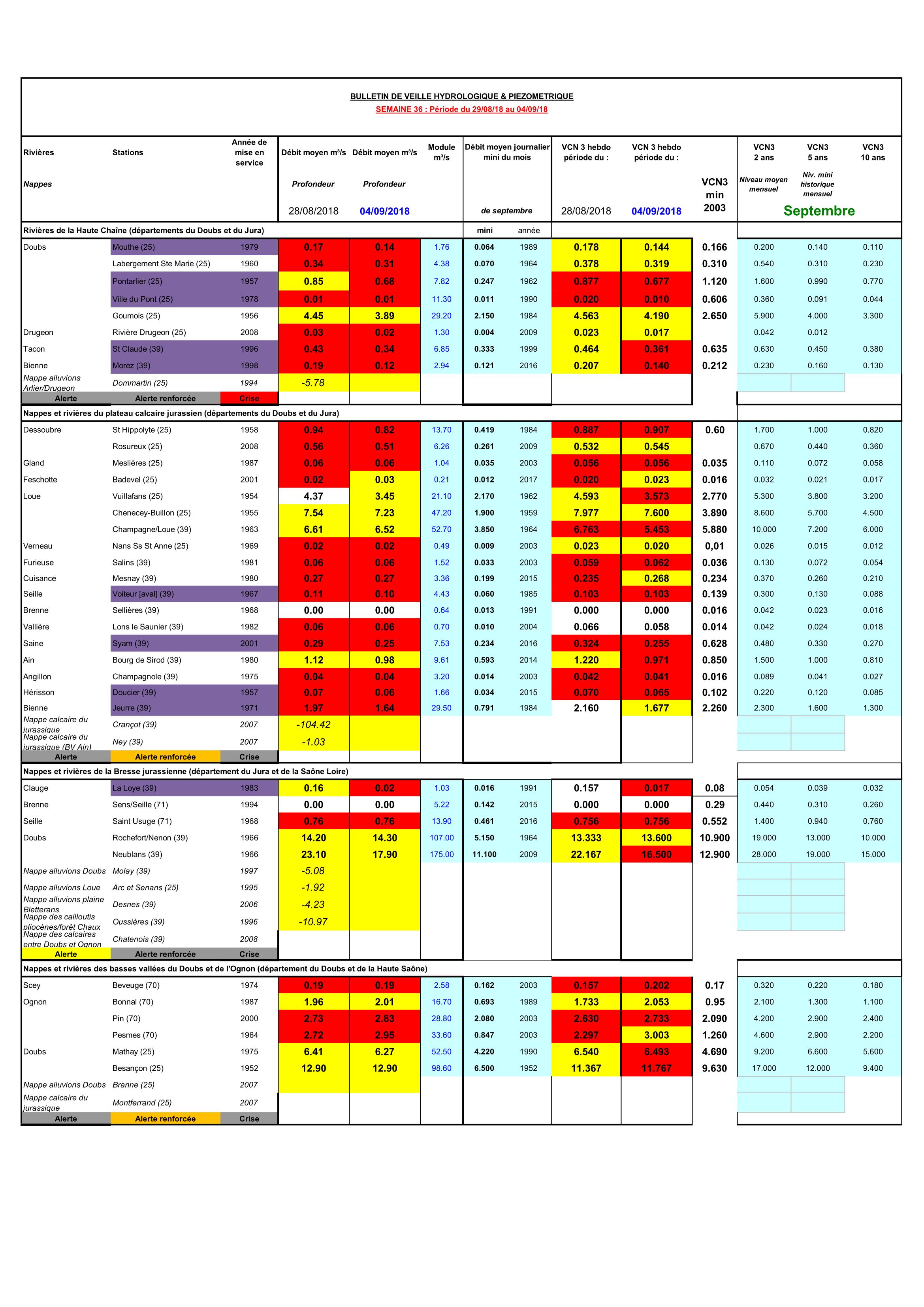 Bulletin Sécheresse semaine 36 - 2018