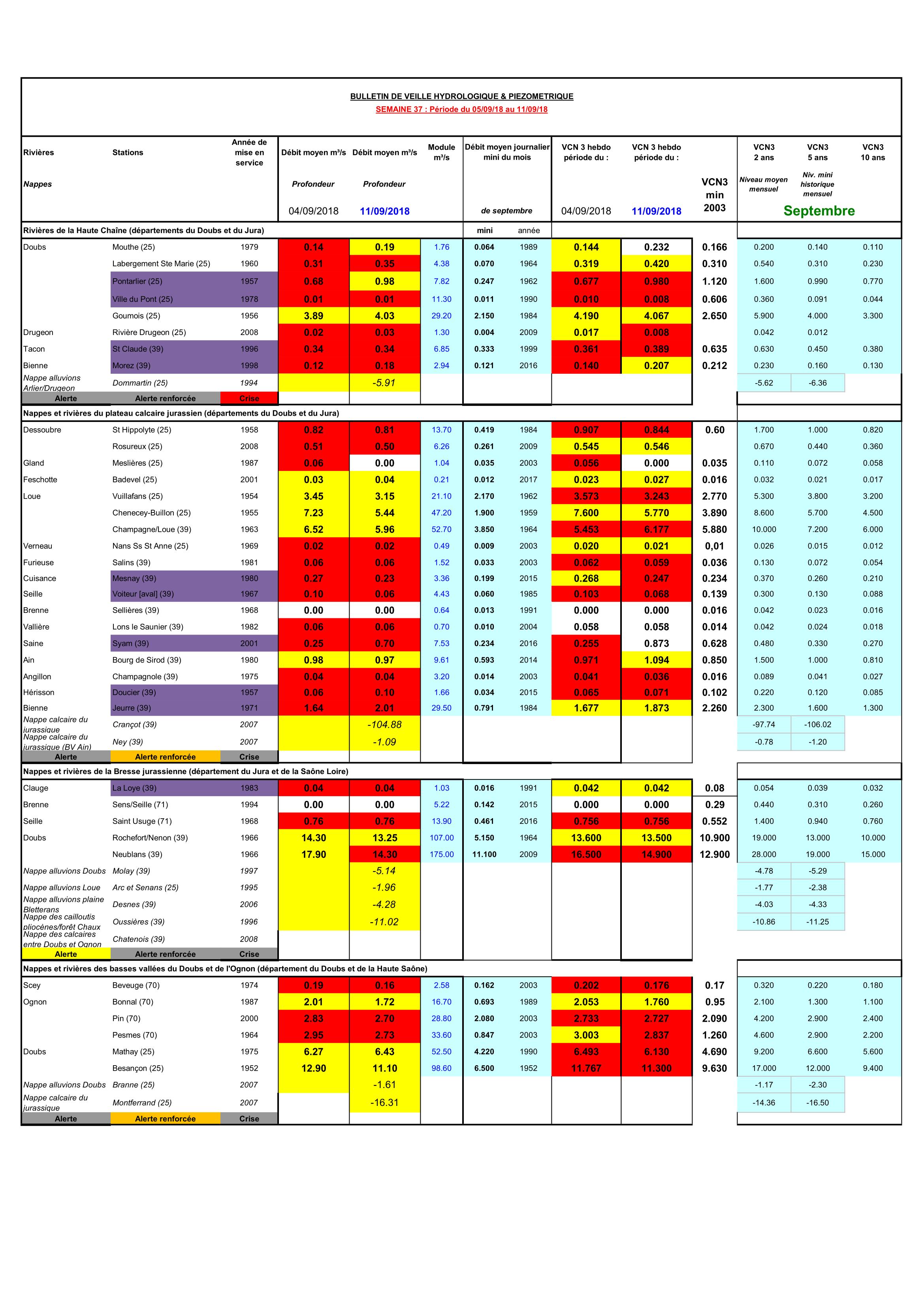 Bulletin Sécheresse semaine 37 - 2018