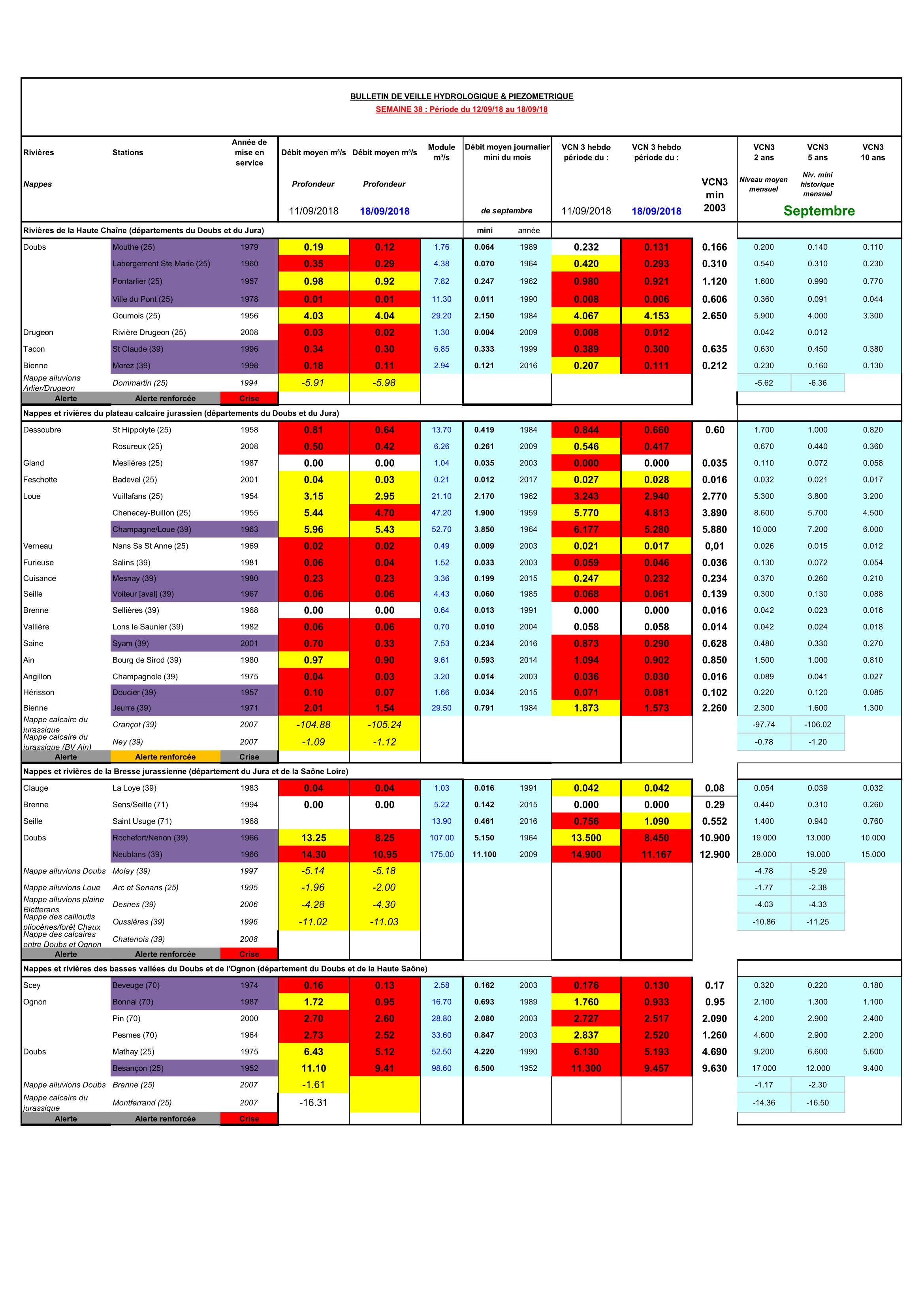 Bulletin Sécheresse semaine 38 - 2018