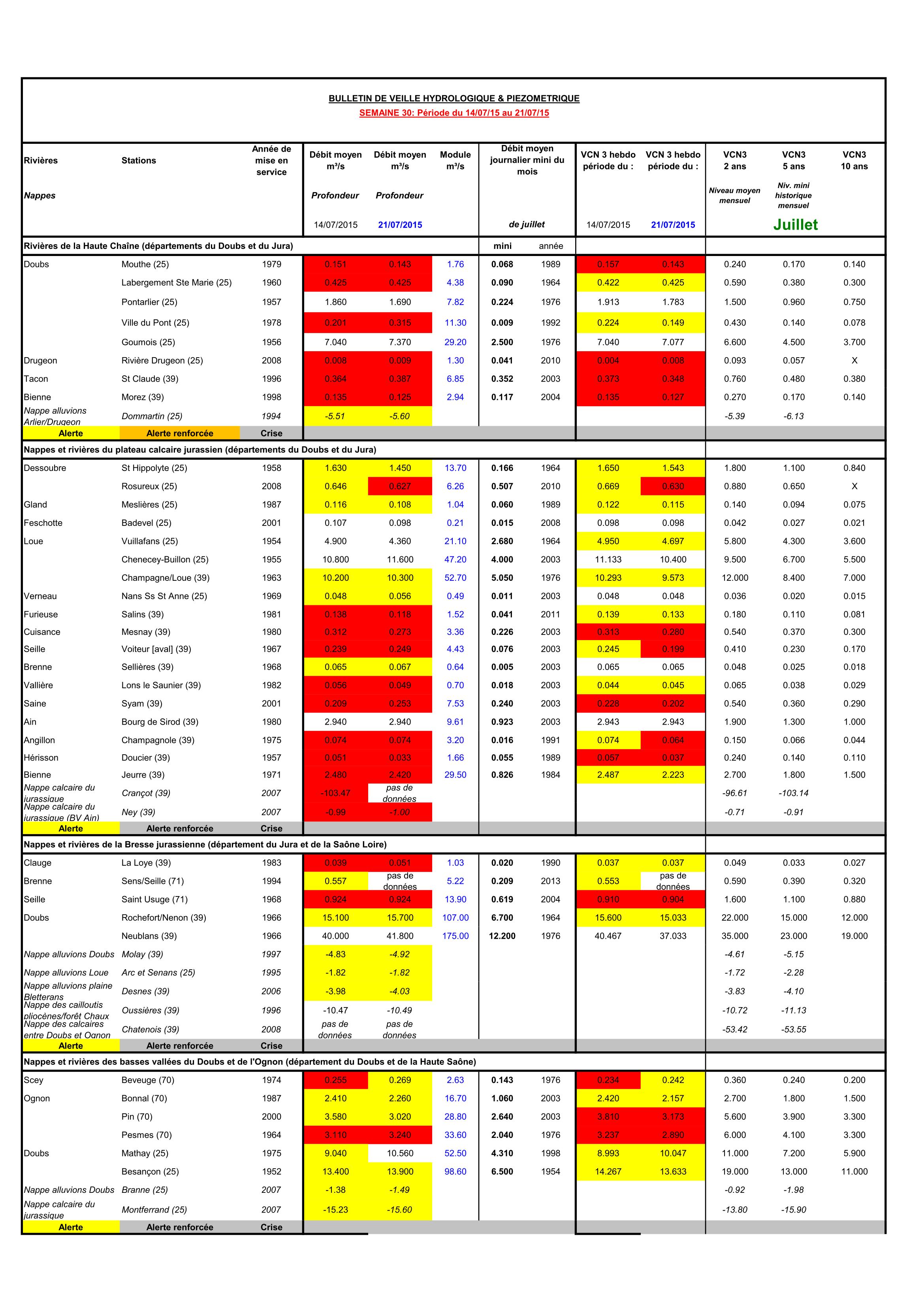 Bulletin Sécheresse semaine 30 - 2015