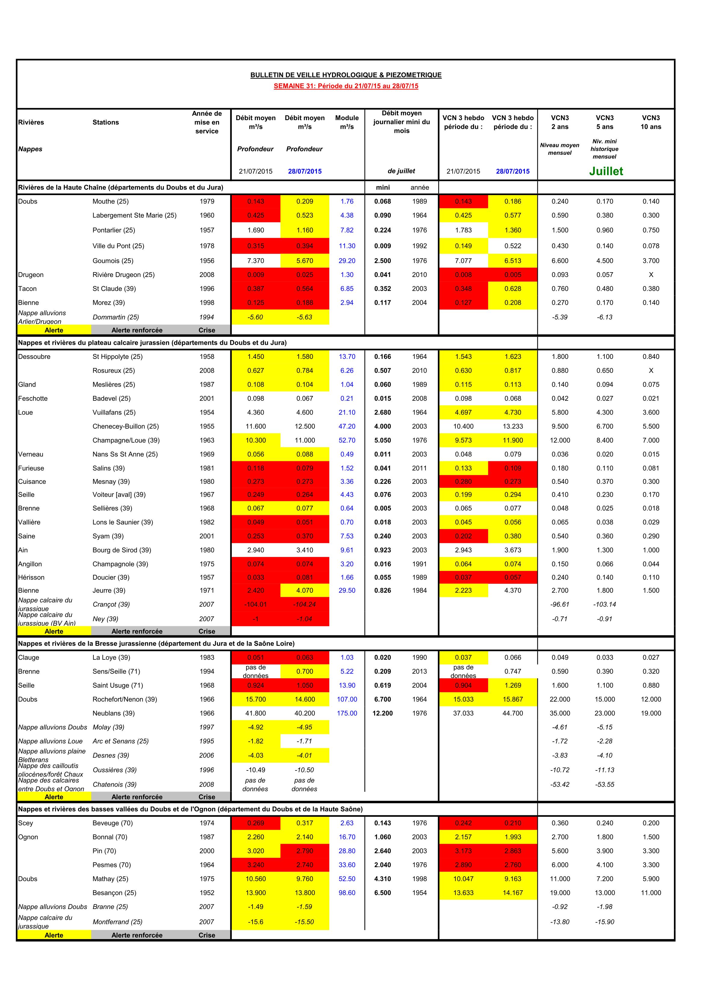 Bulletin Sécheresse semaine 31 - 2015