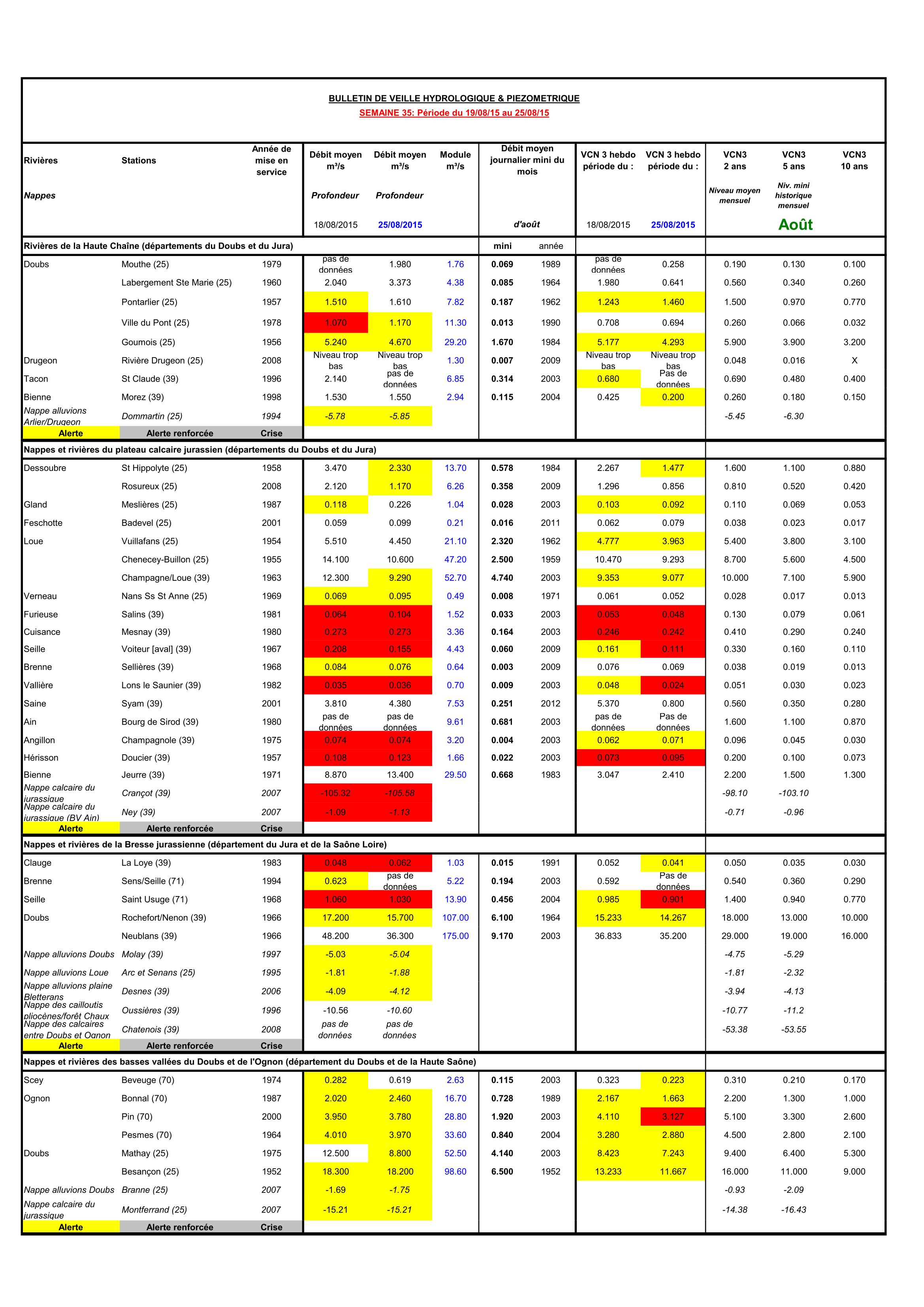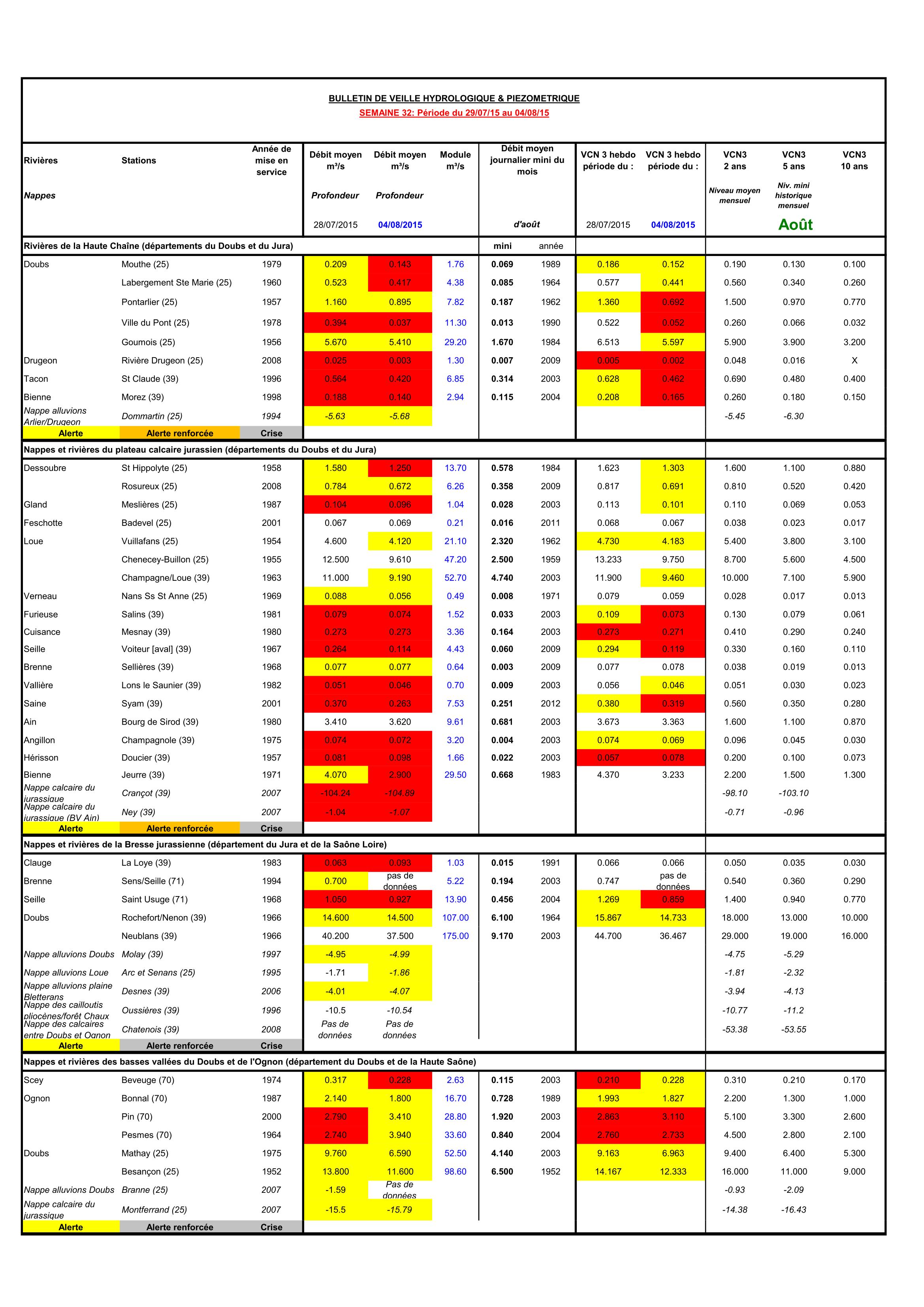Bulletin Sécheresse semaine 32 - 2015