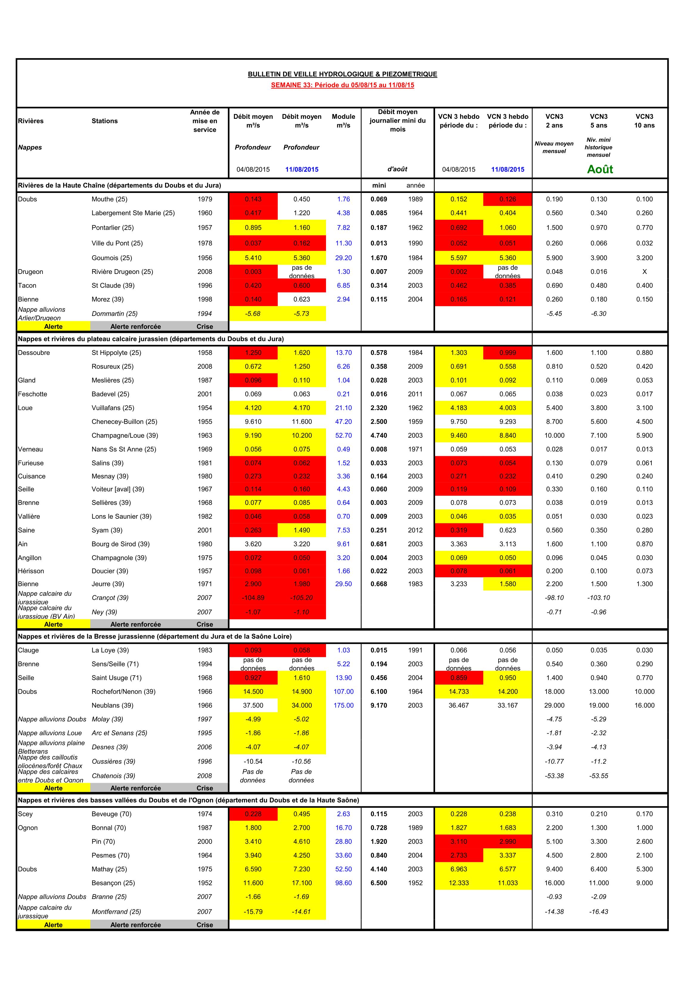 Bulletin Sécheresse semaine 33 - 2015