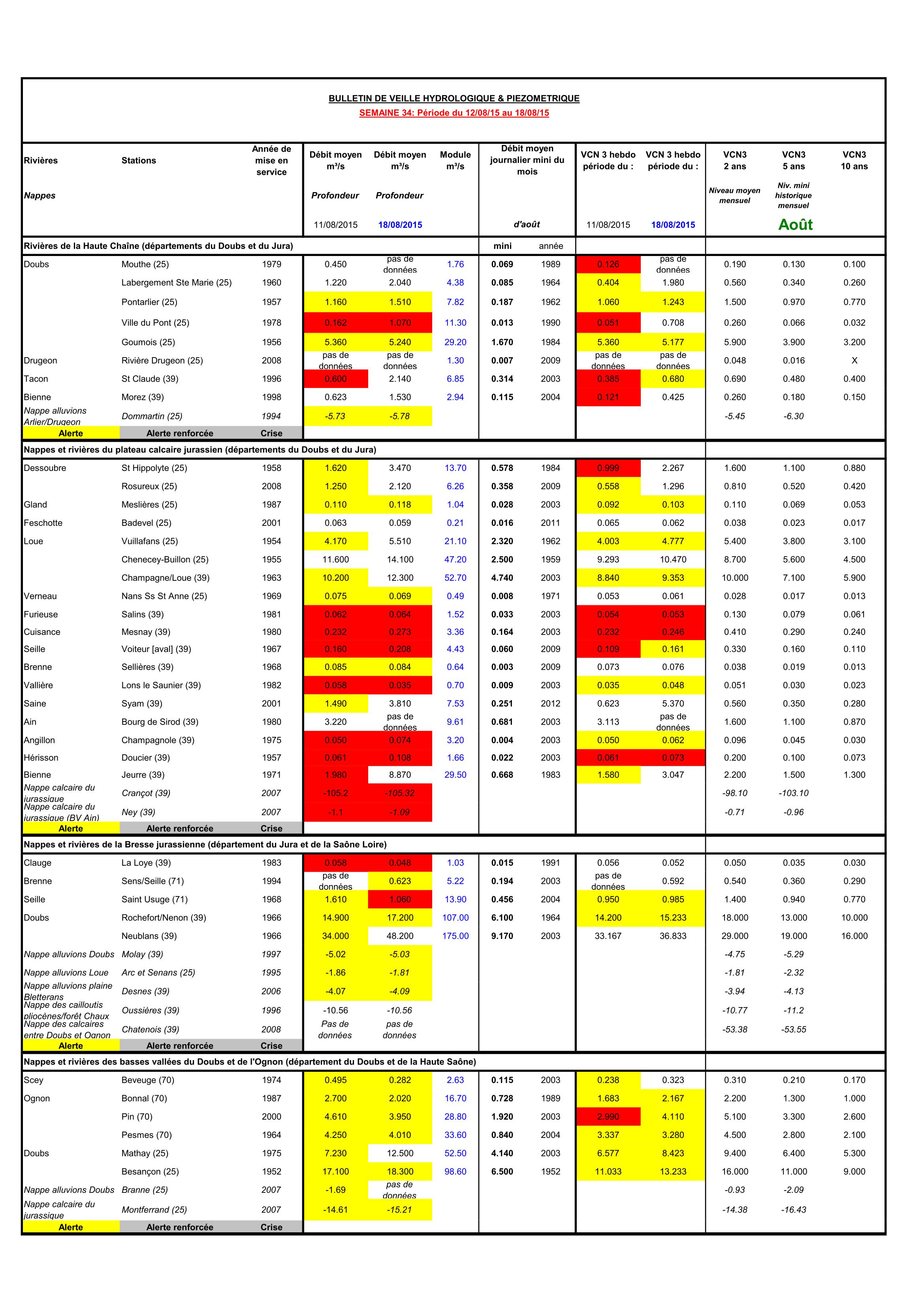 Bulletin Sécheresse semaine 34 - 2015