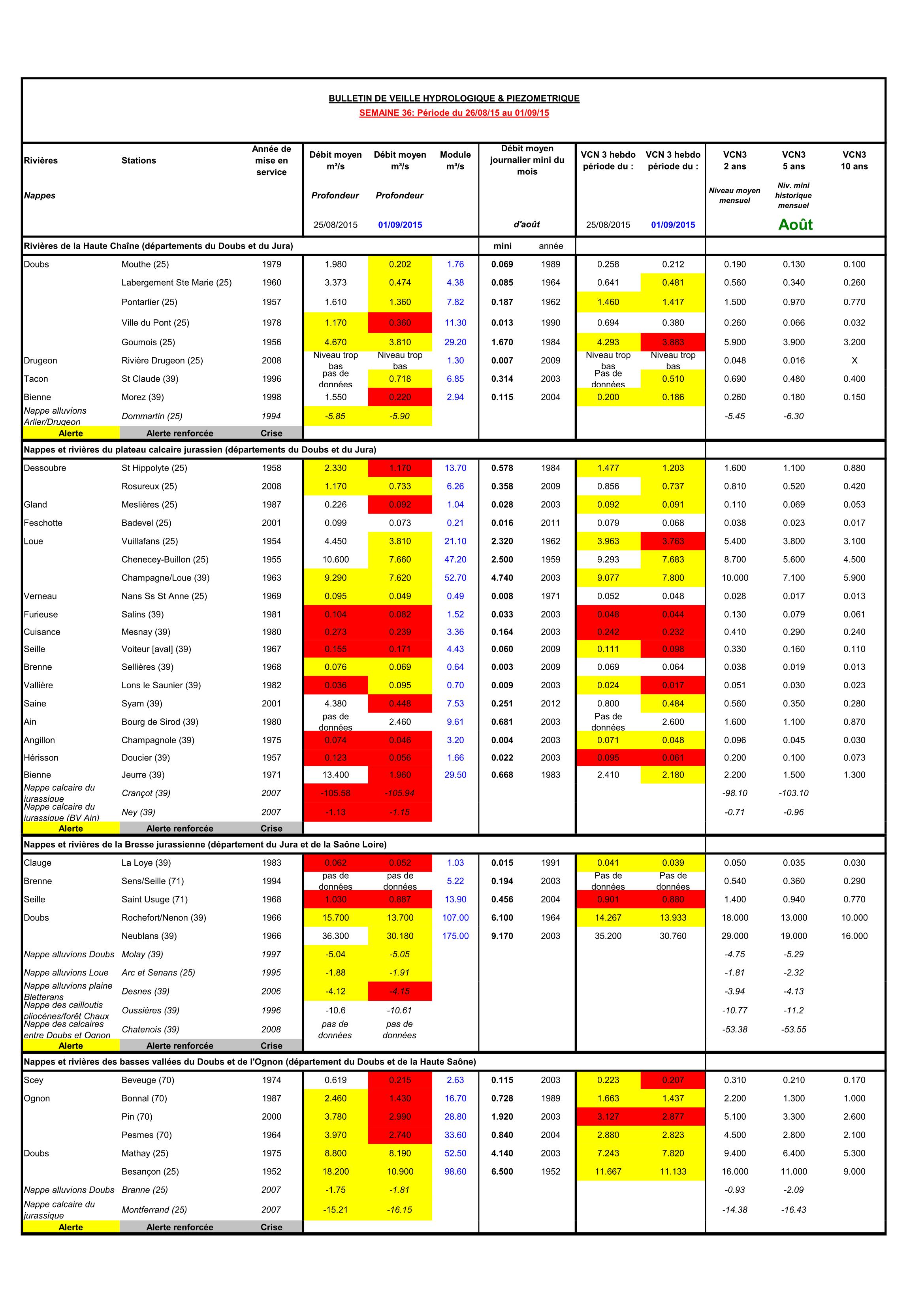 Bulletin Sécheresse semaine 36 - 2015
