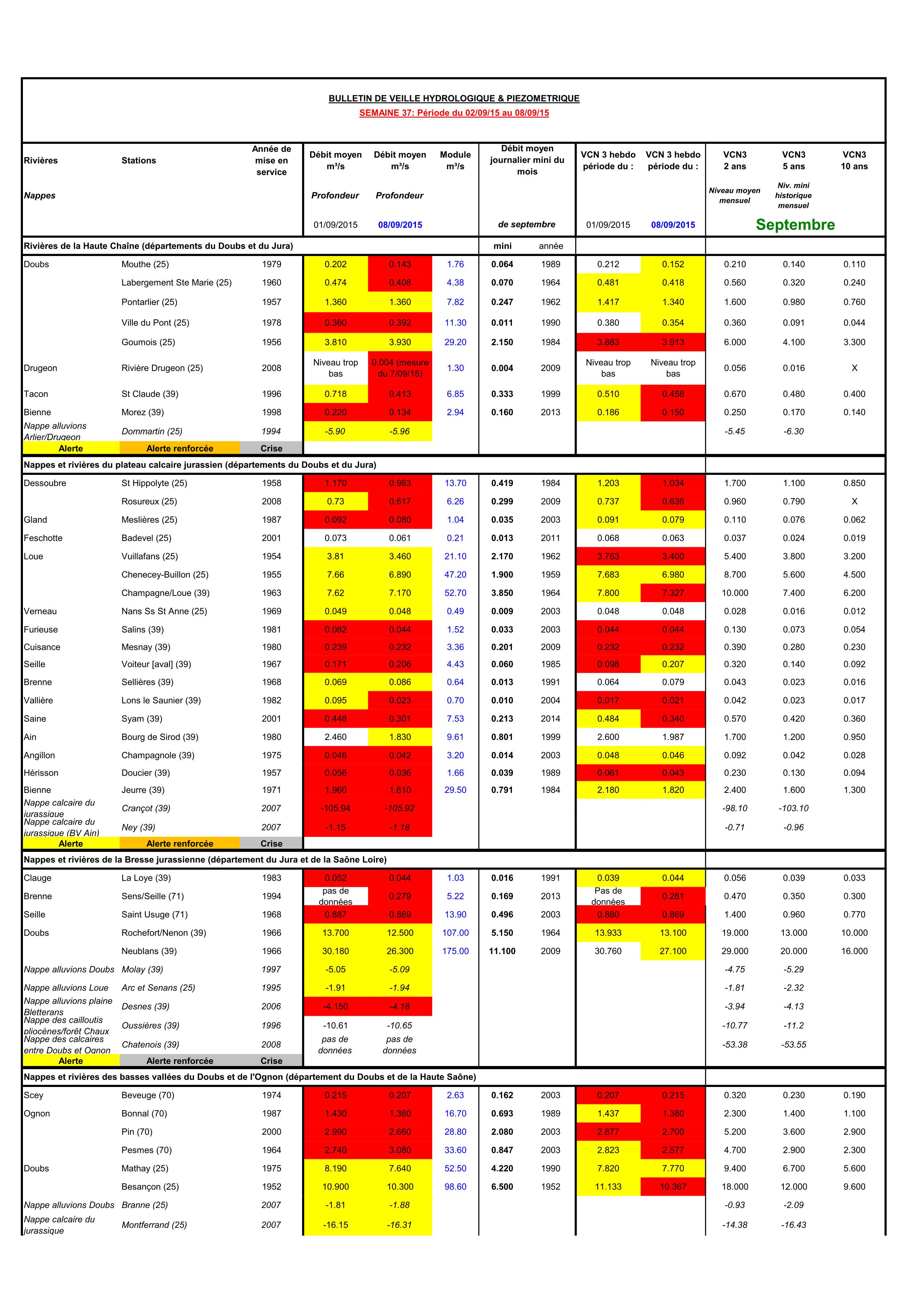 Bulletin Sécheresse semaine 37 - 2015