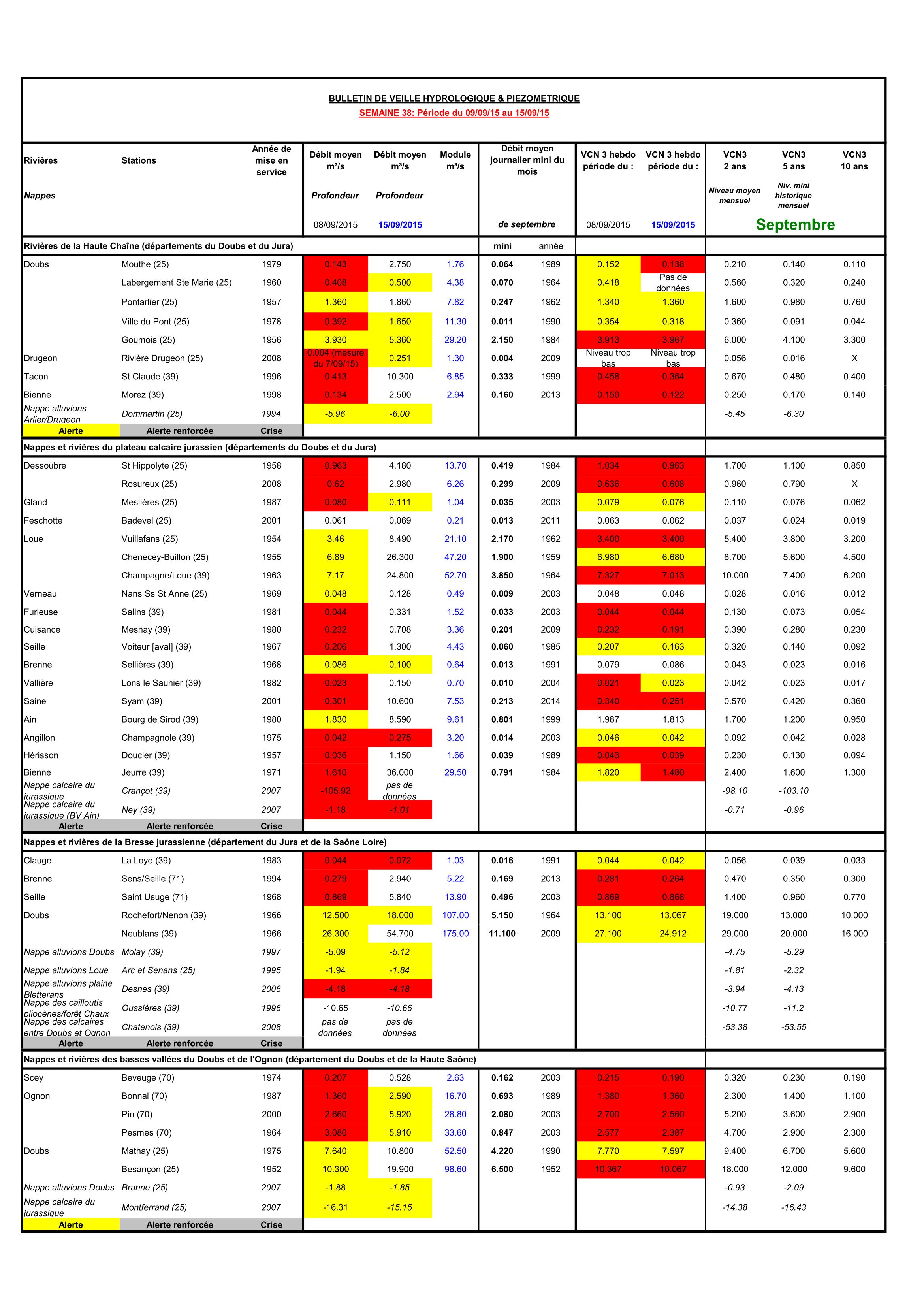 Bulletin Sécheresse semaine 38 - 2015