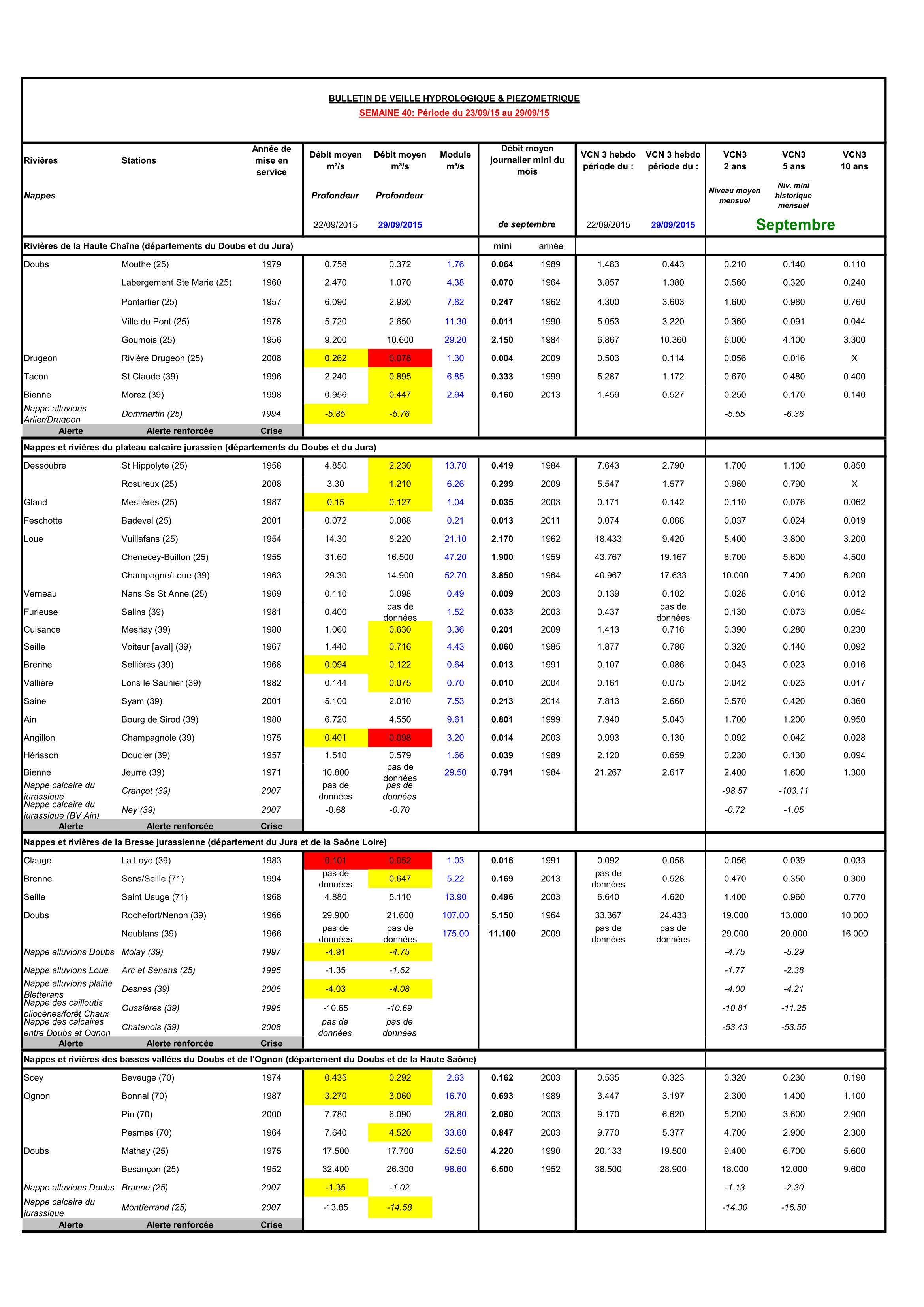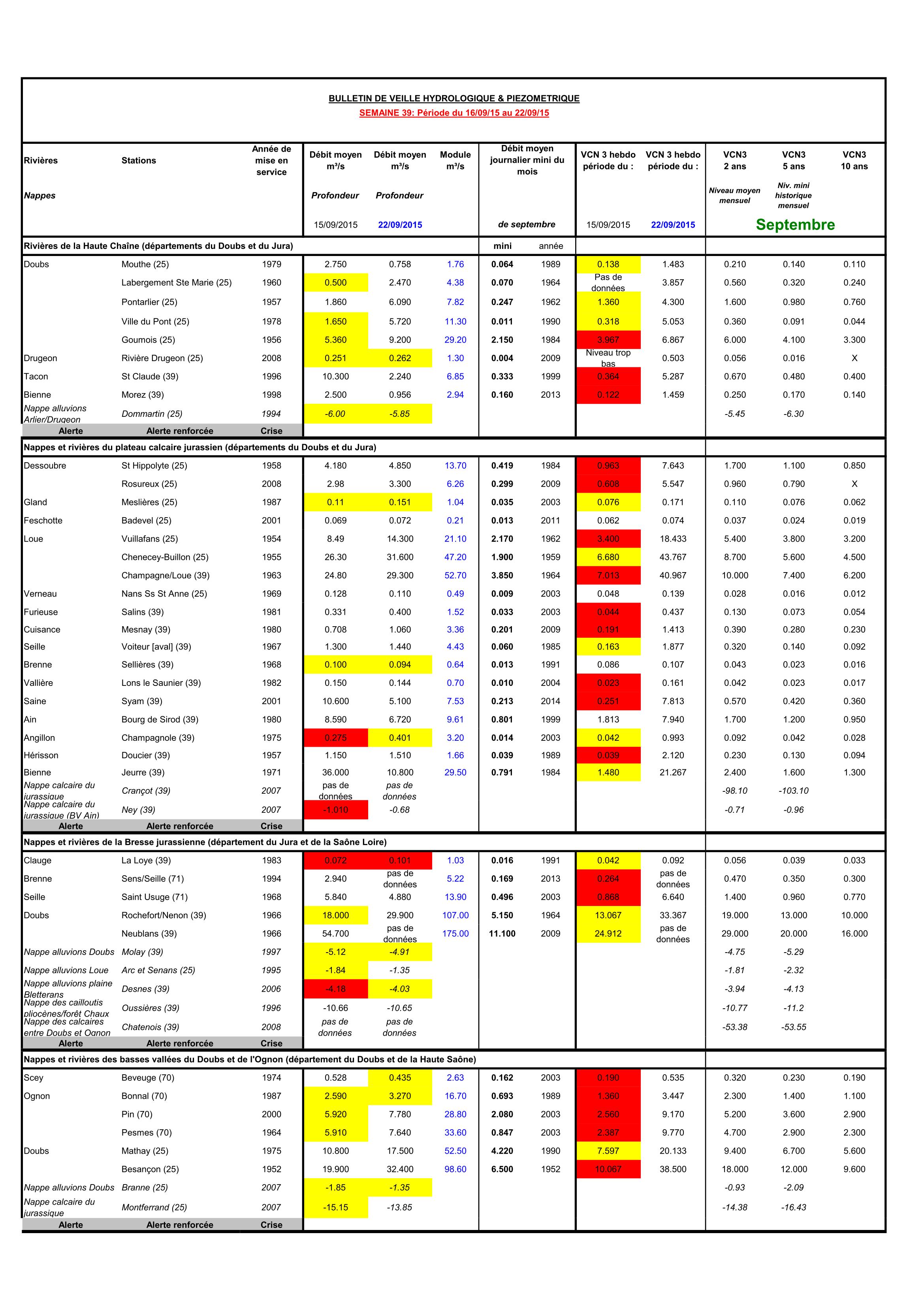 Bulletin Sécheresse semaine 39 - 2015