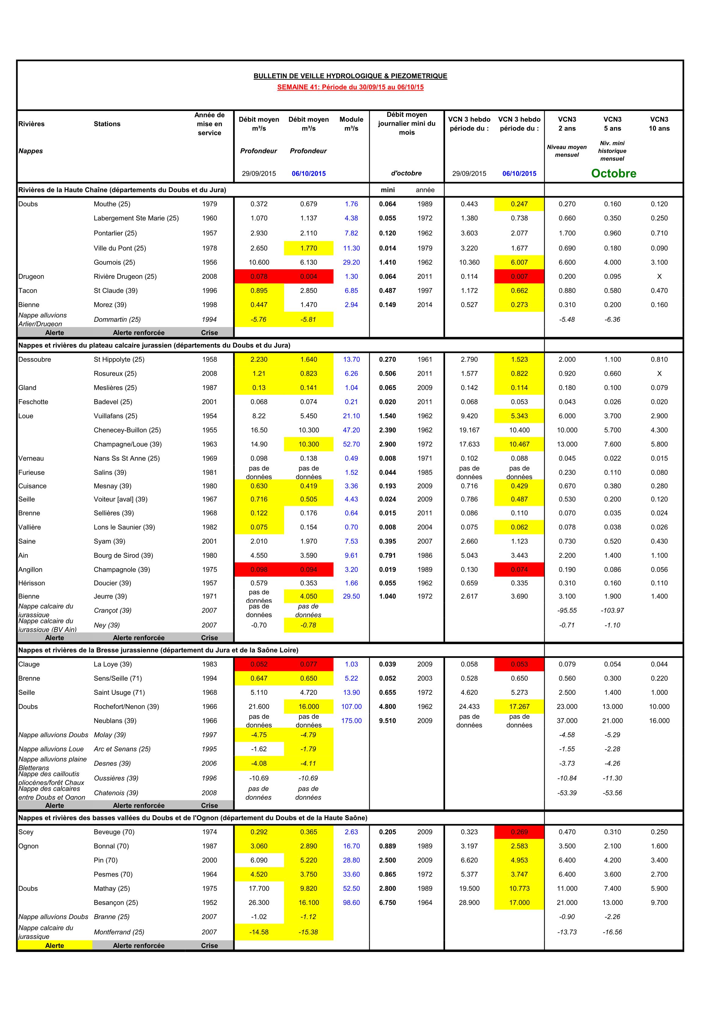 Bulletin Sécheresse semaine 41 - 2015