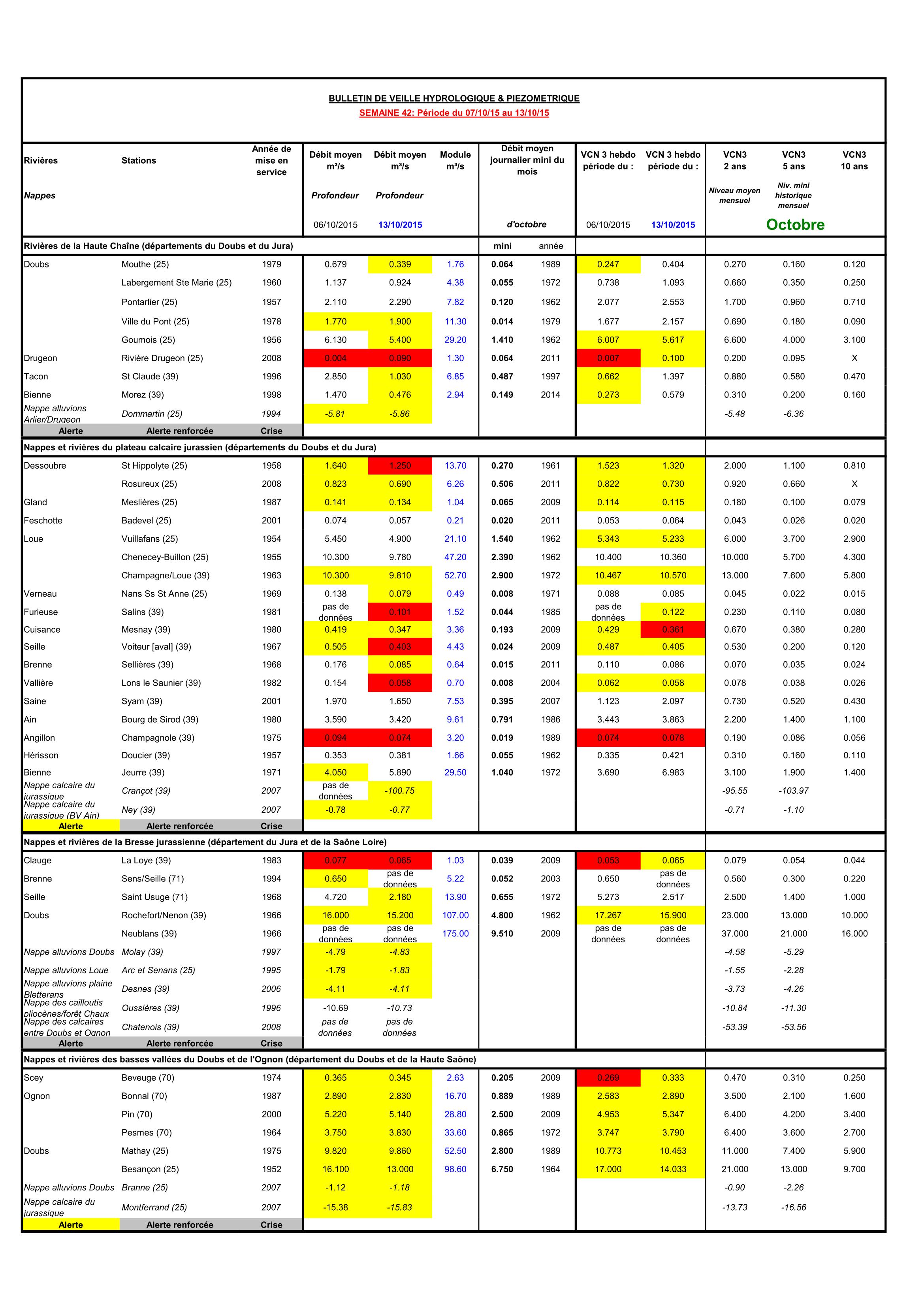 Bulletin Sécheresse semaine 42 - 2015