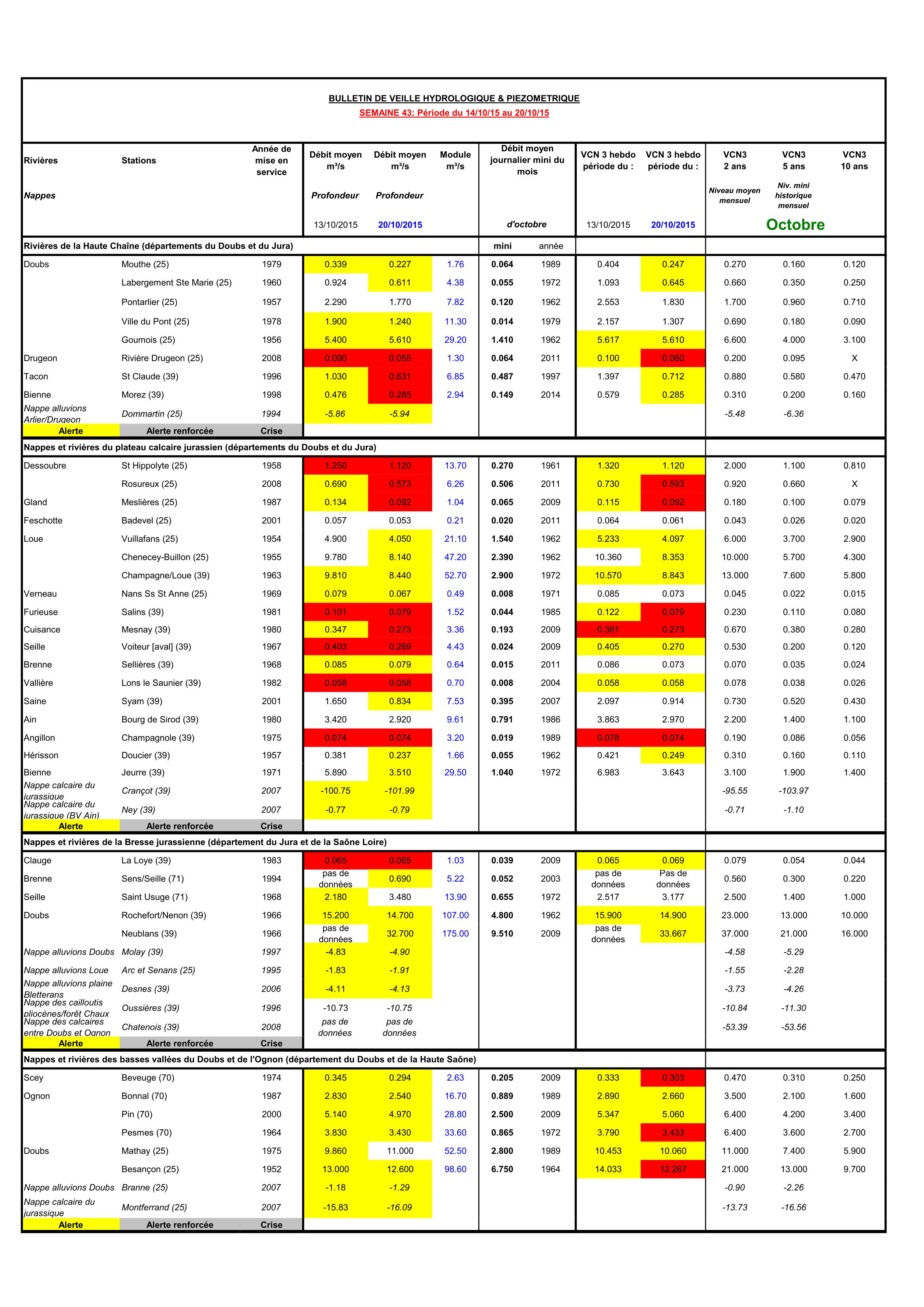 Bulletin Sécheresse semaine 43 - 2015