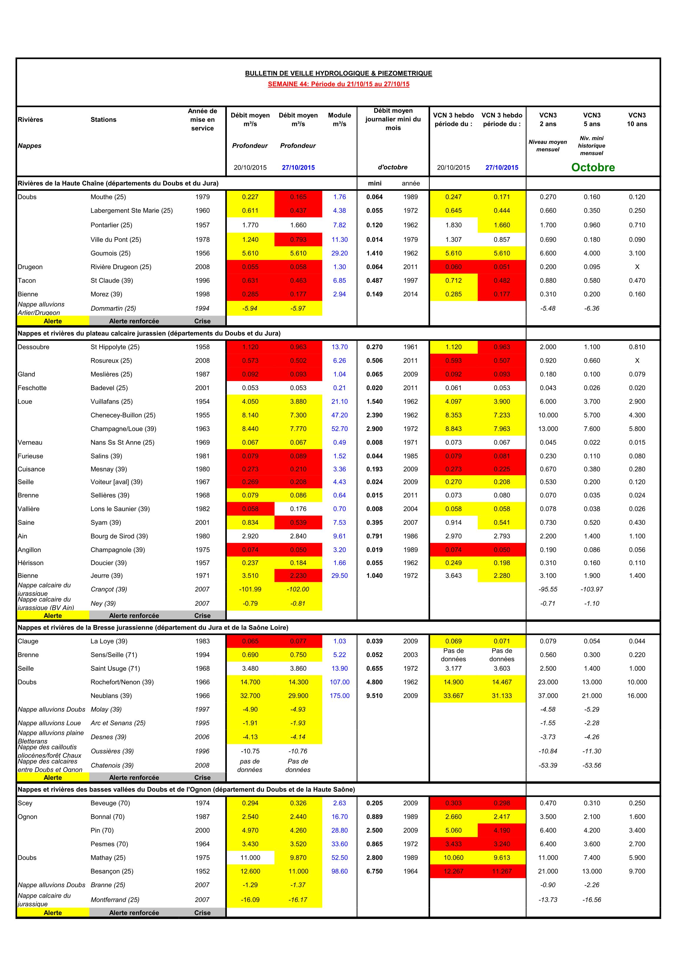 Bulletin Sécheresse semaine 44 - 2015