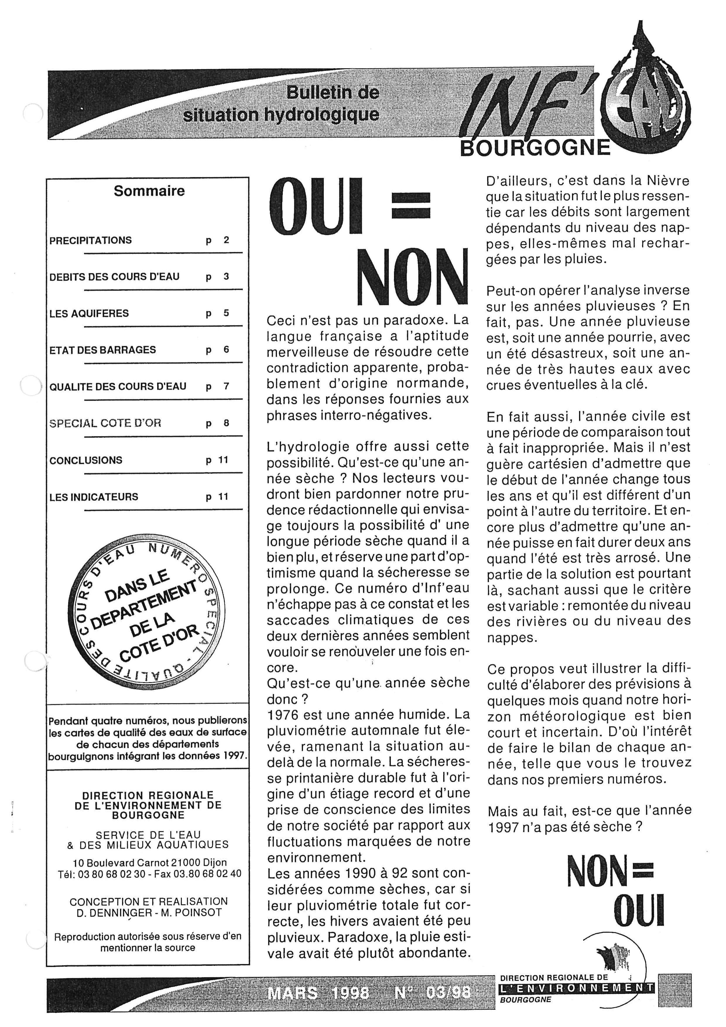 Bulletin hydrologique mars 1998