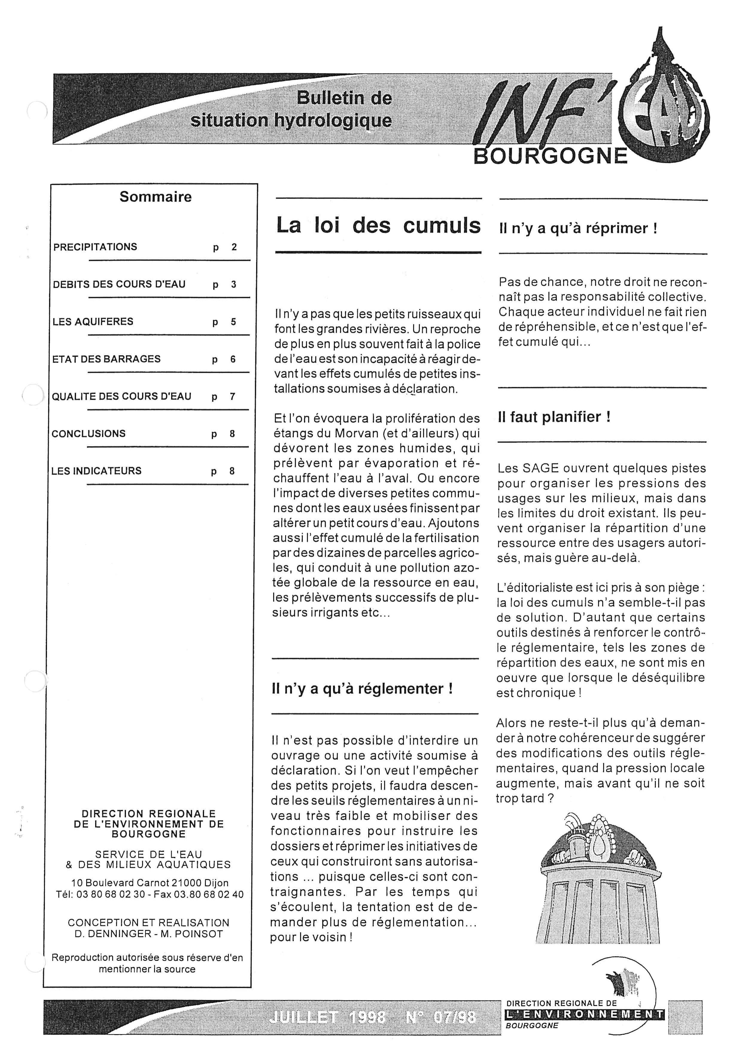 Bulletin hydrologqie juillet 1998