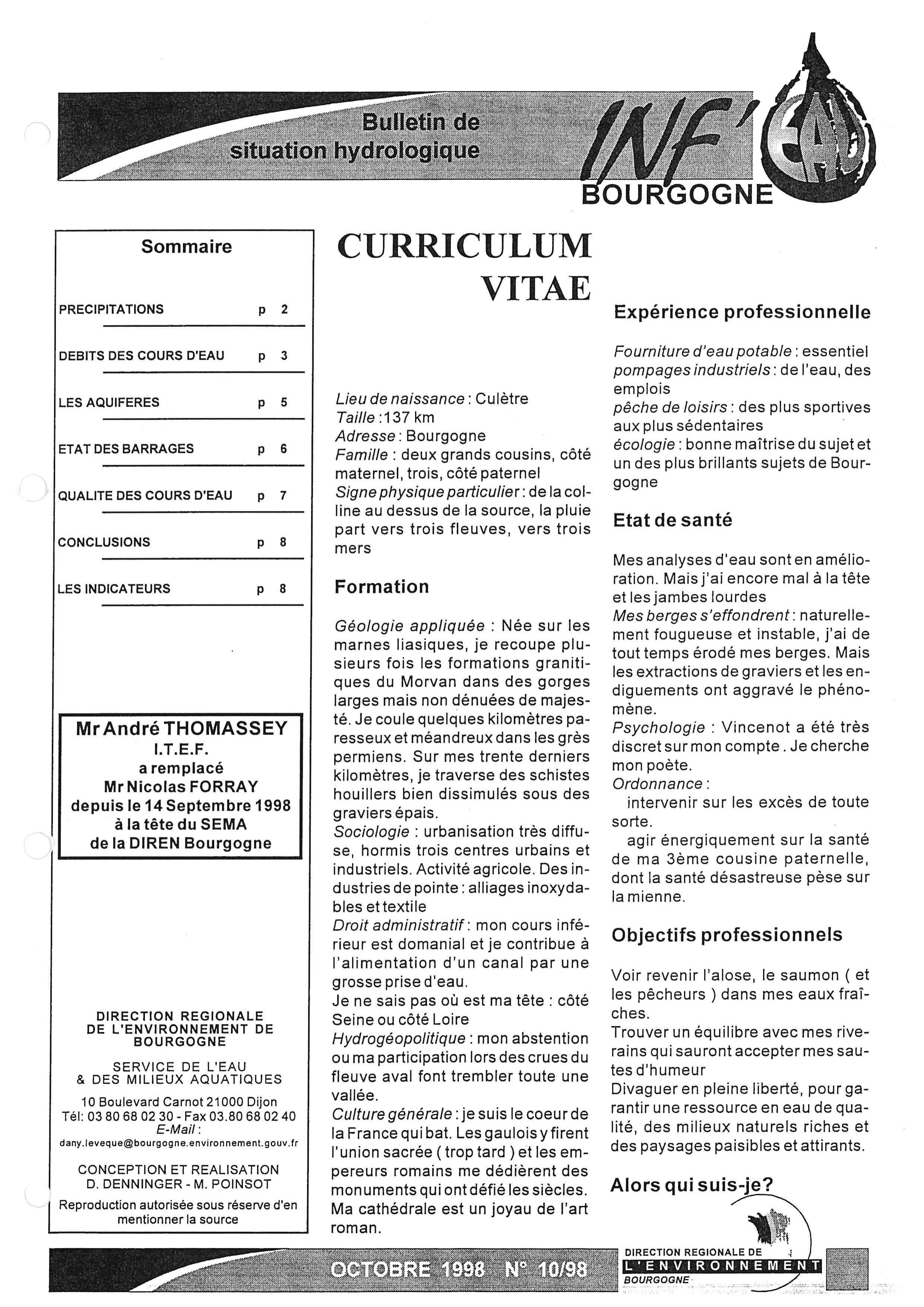 Bulletin hydrologique octobre 1998