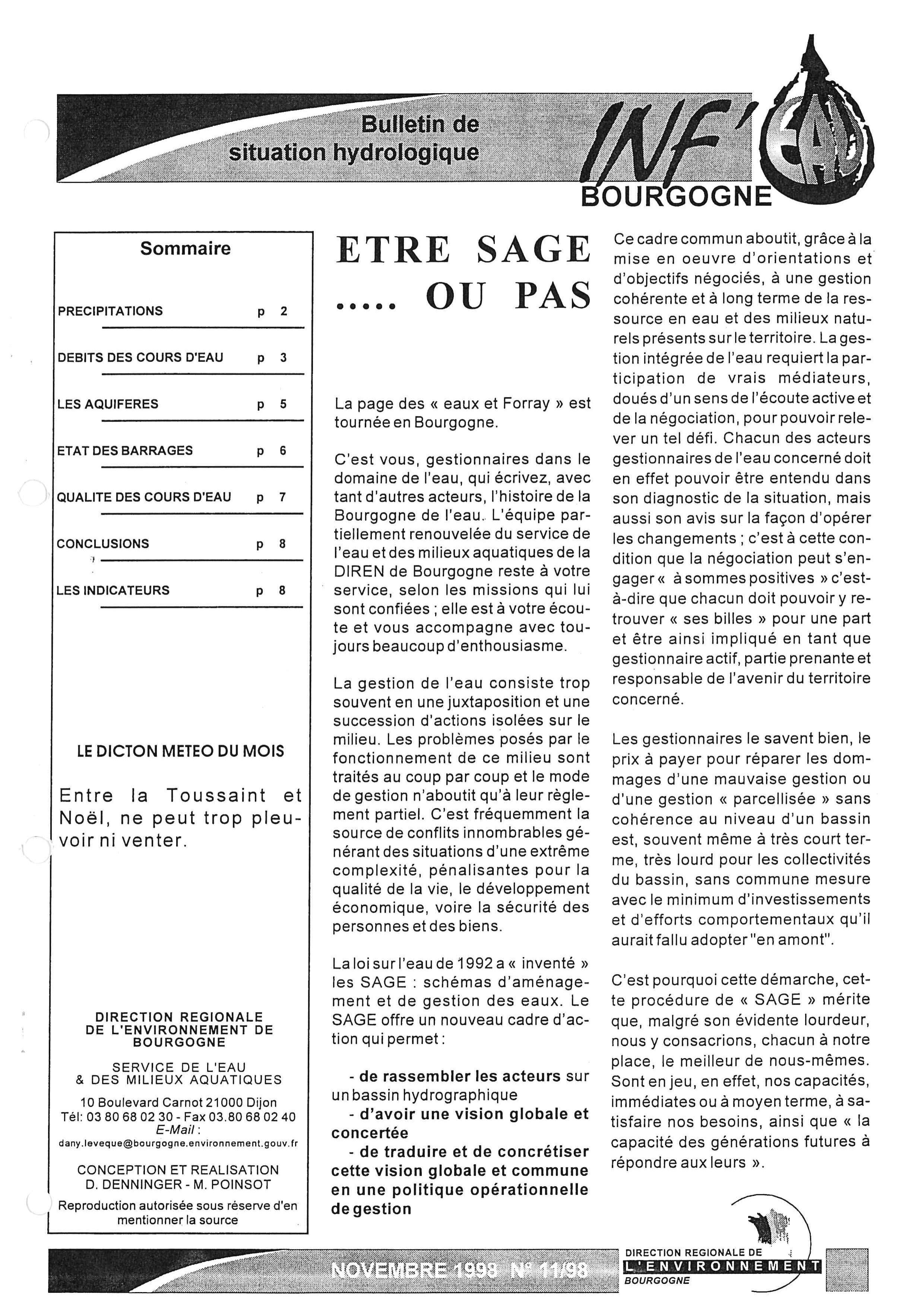 Bulletin hydrologique novembre 1998