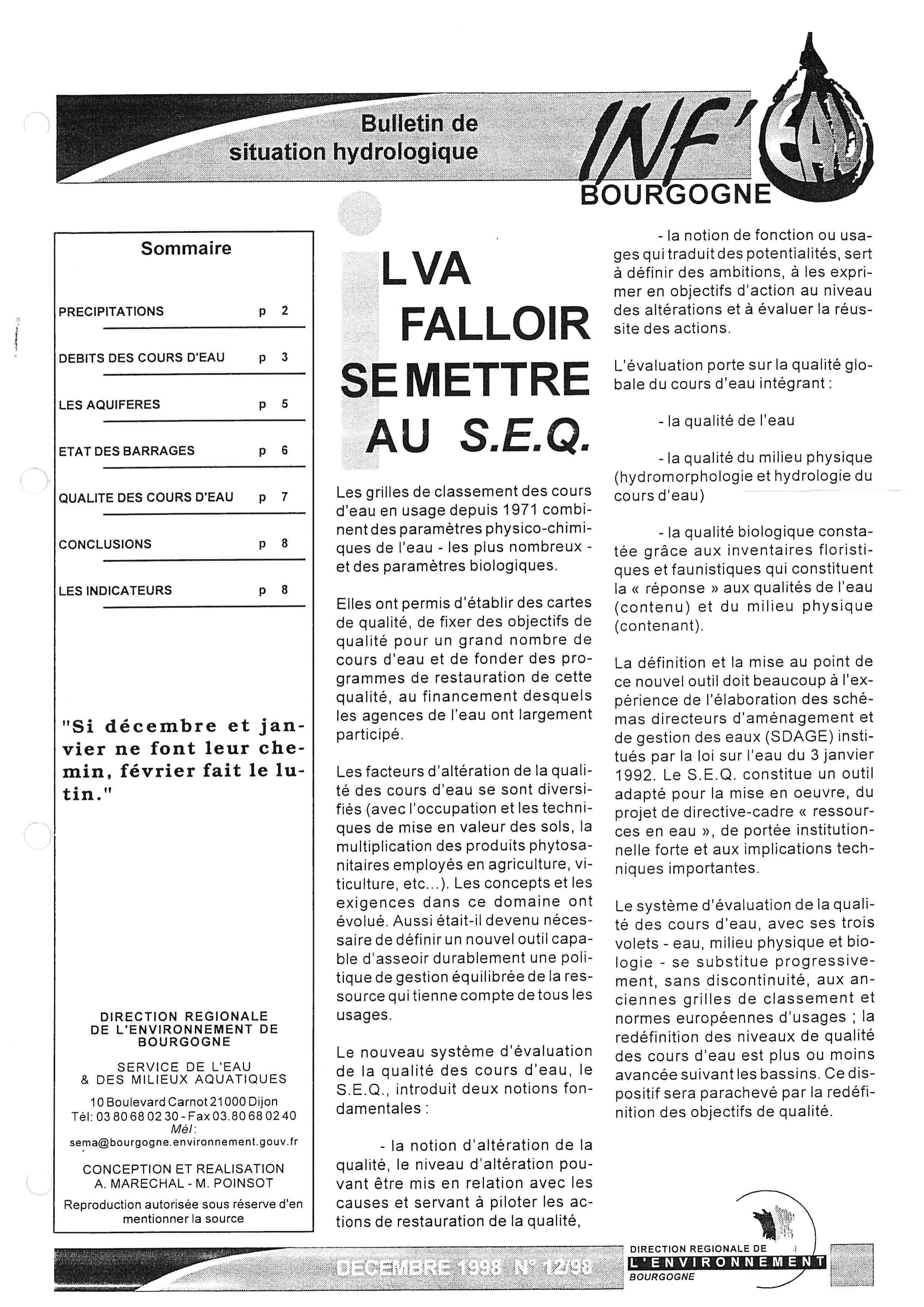 Bulletin hydrologique décembre 1998
