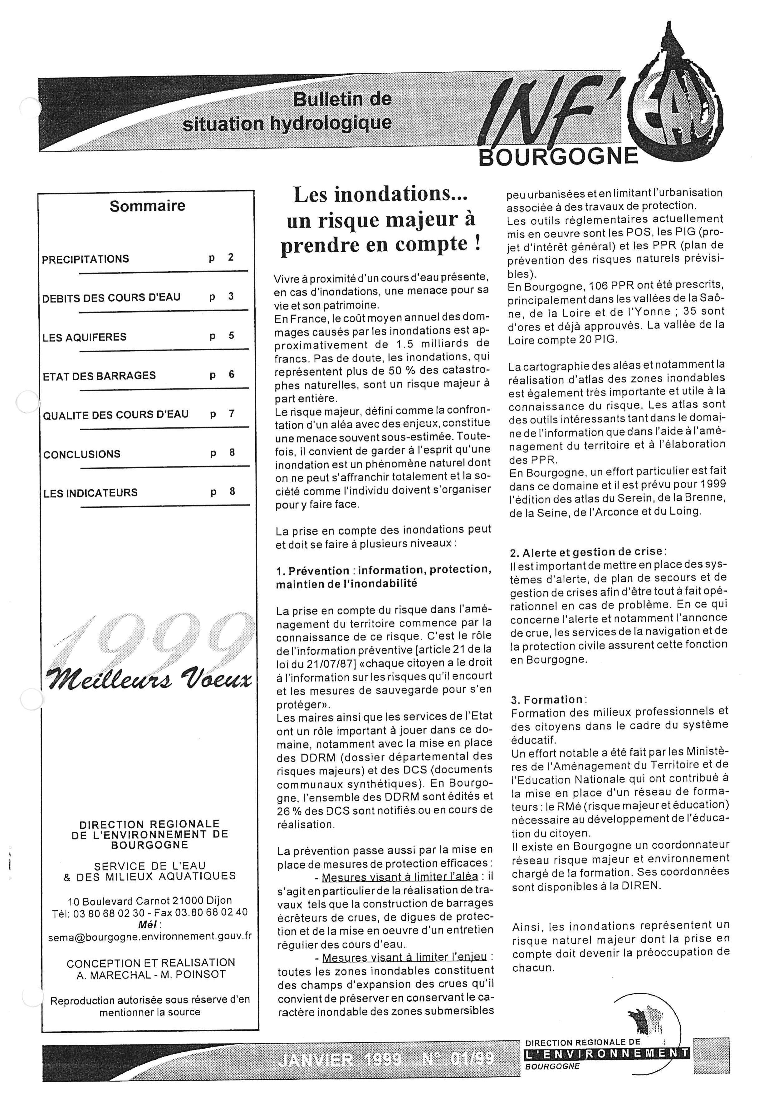 Bulletin Hydrologique Janvier 1999