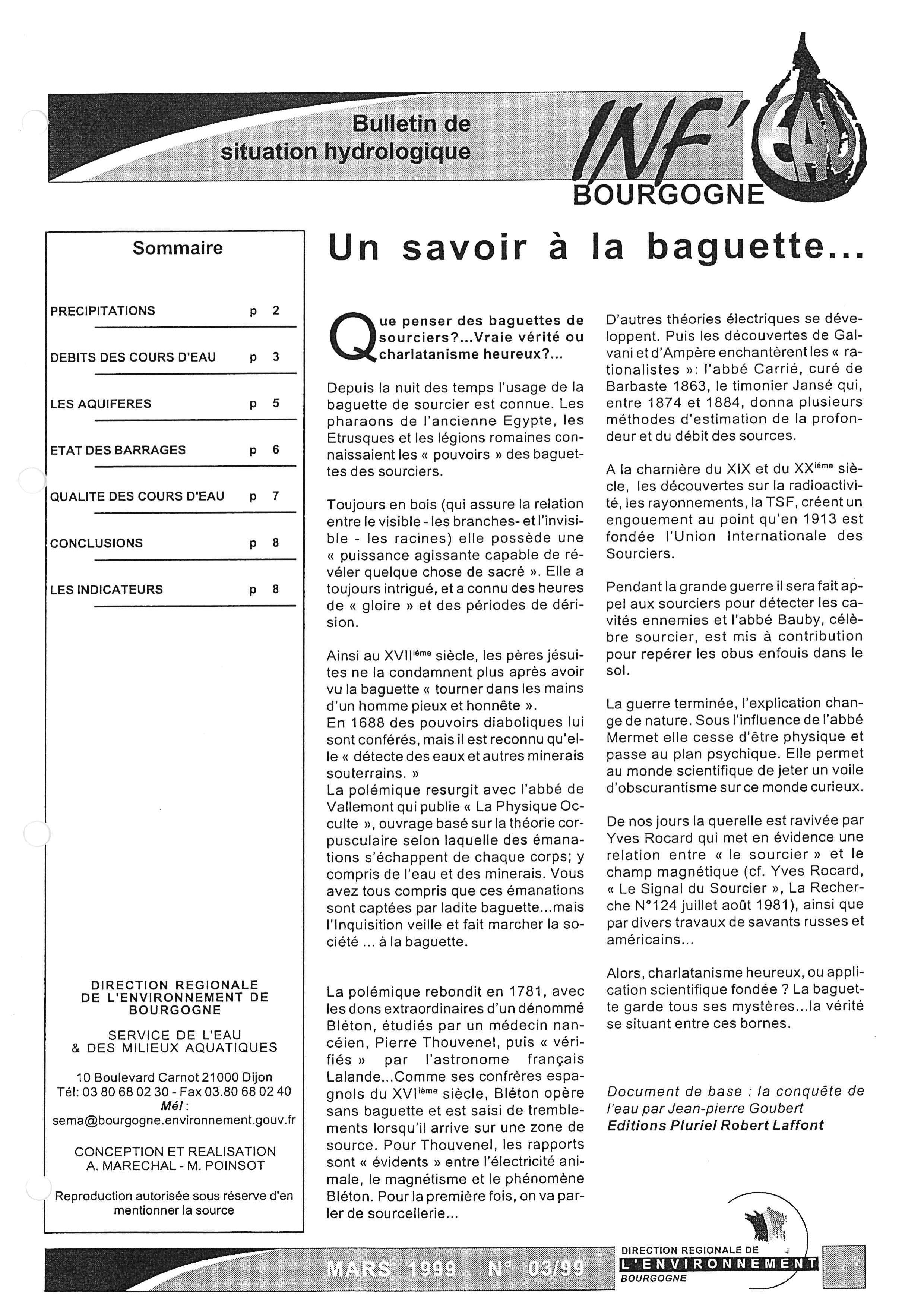 Bulletin hydrologique mars 1999