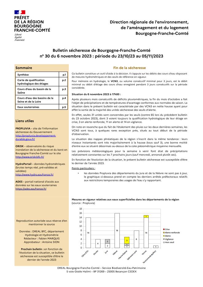 Bulletin Sécheresse BFC n°30 du 06-11-2023