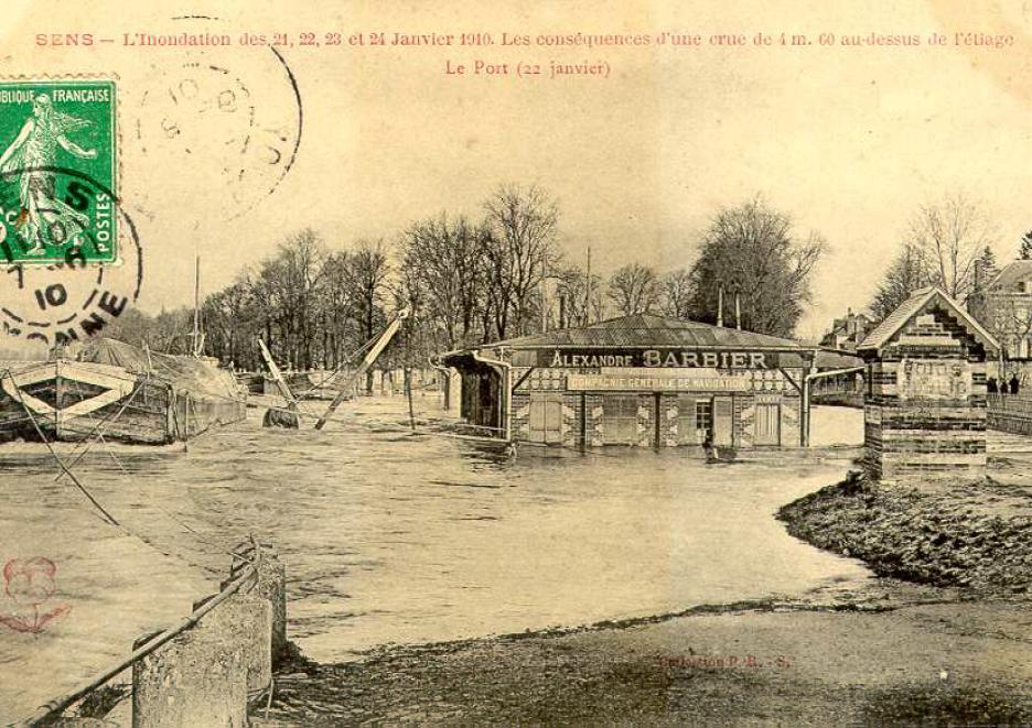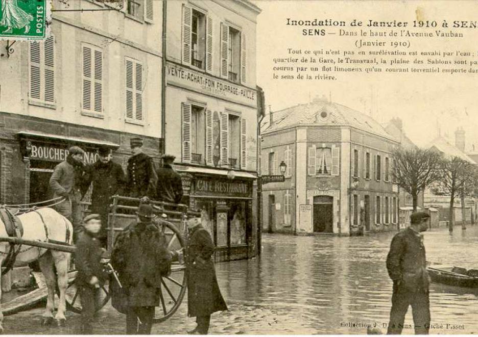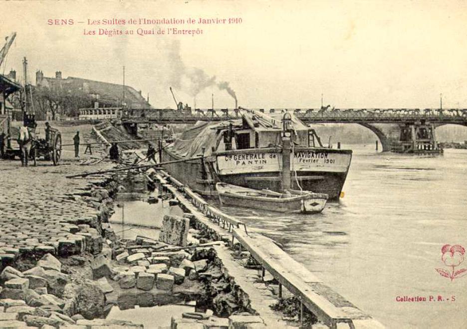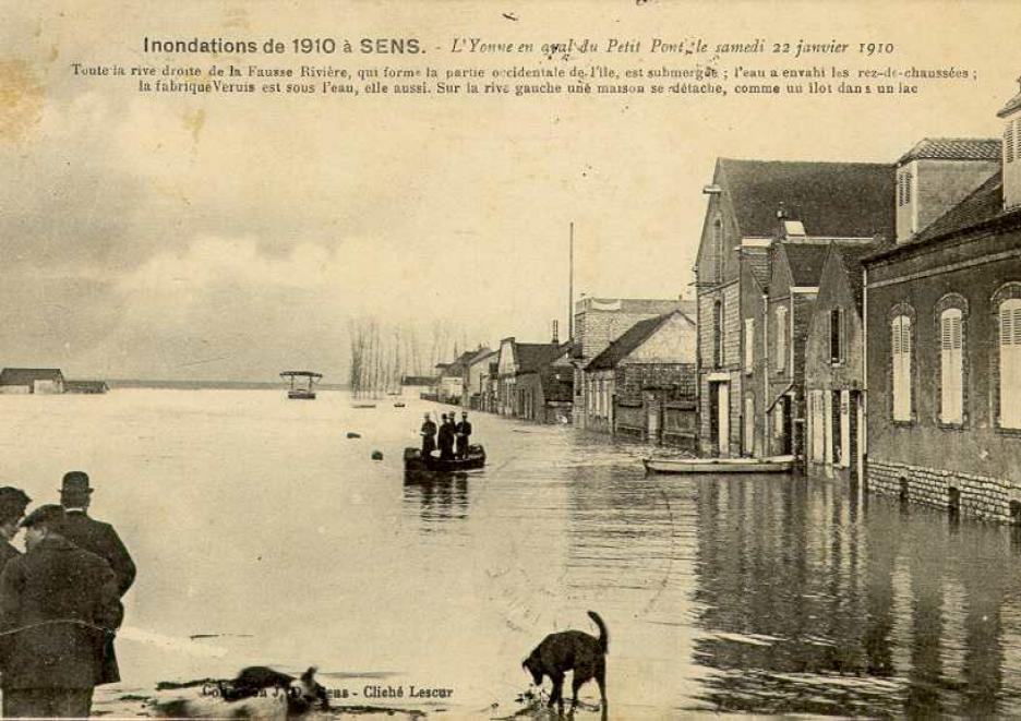 Photo crue de l'Yonne janvier 1910 Sens 89