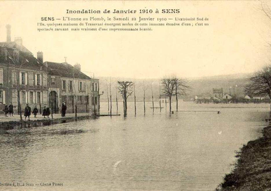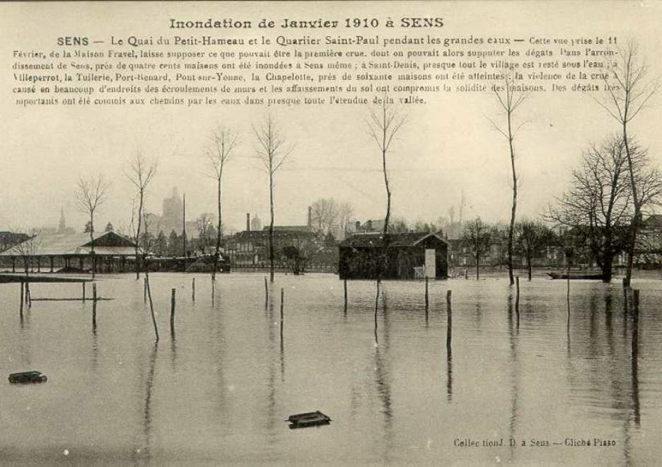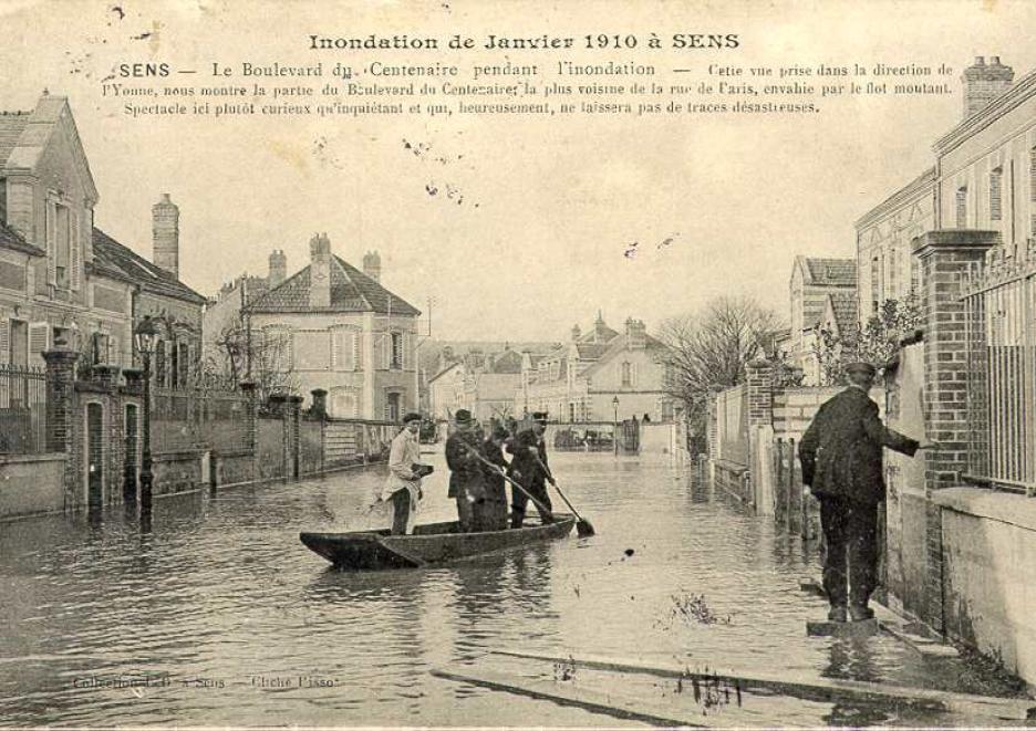 Photo crue de l'Yonne janvier 1910 Sens 89