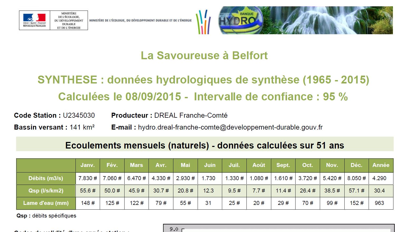 La Savoureuse, synthèse : données hydrologiques