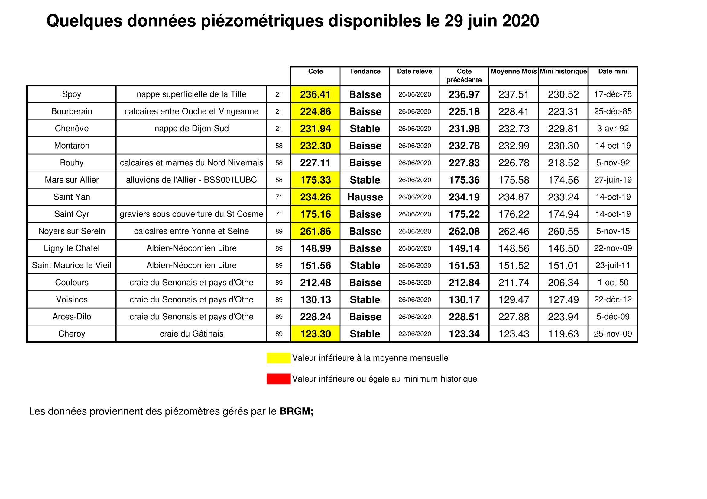 Bulletin Sécheresse BFC/Ouest 29-06-2020