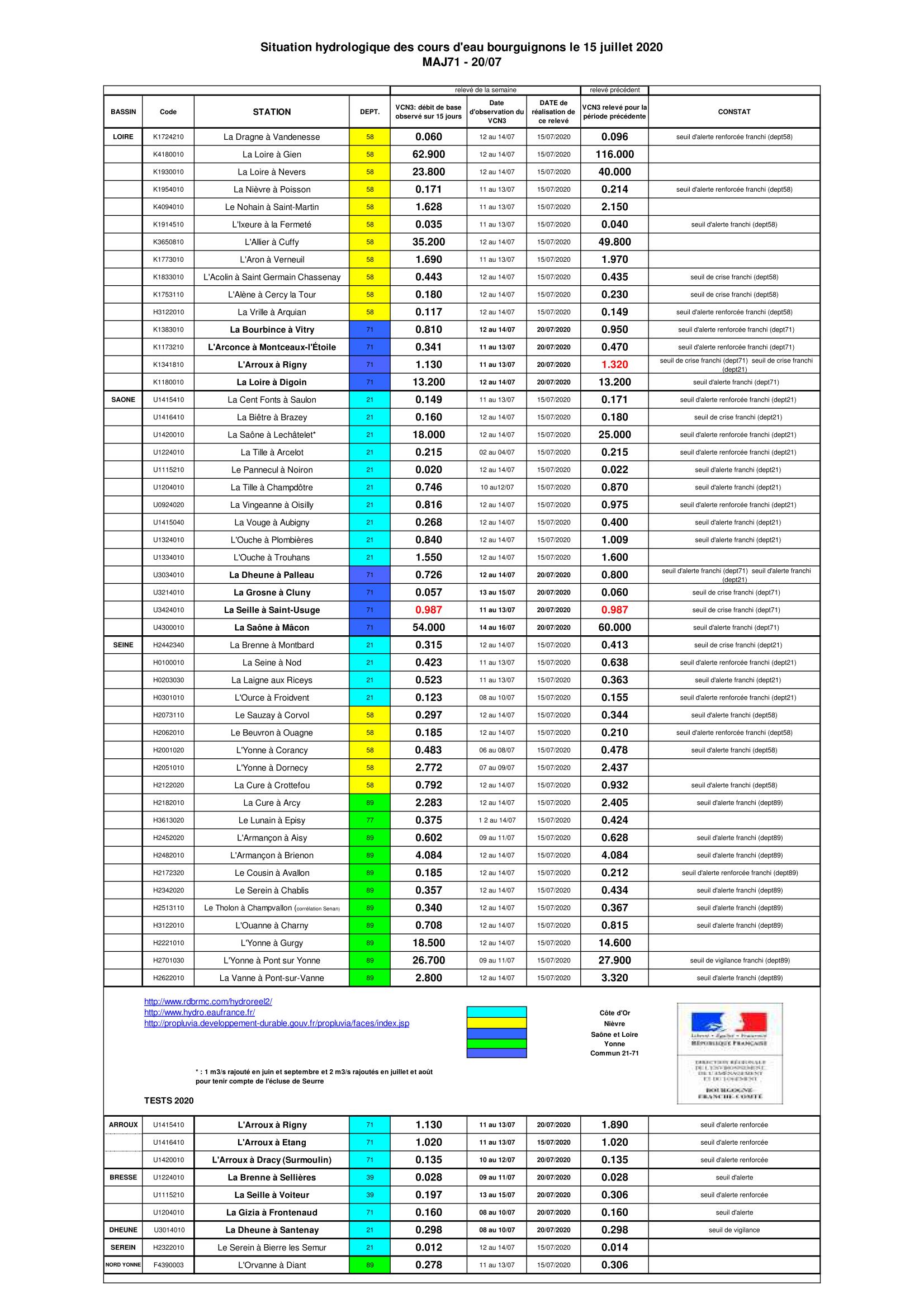 Bulletin Sécheresse BFC/Ouest 15-07-2020
