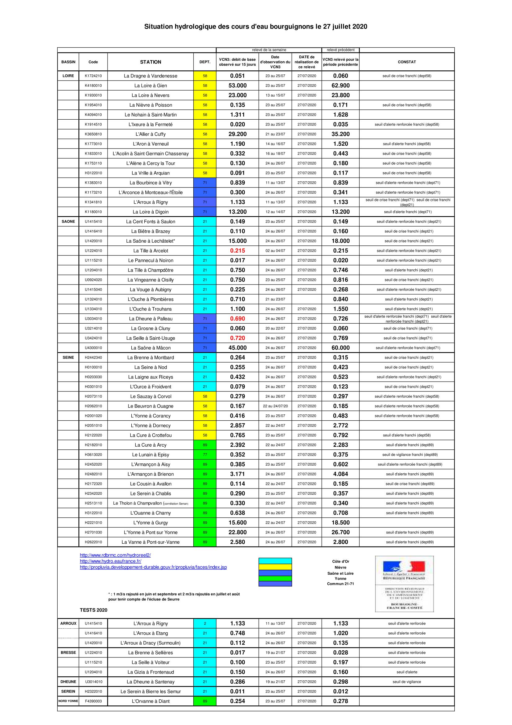 Bulletin Sécheresse BFC/Ouest 27-07-2020